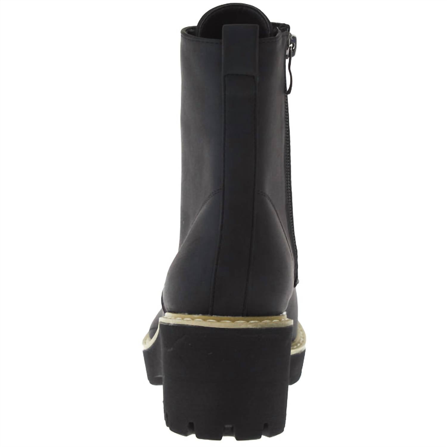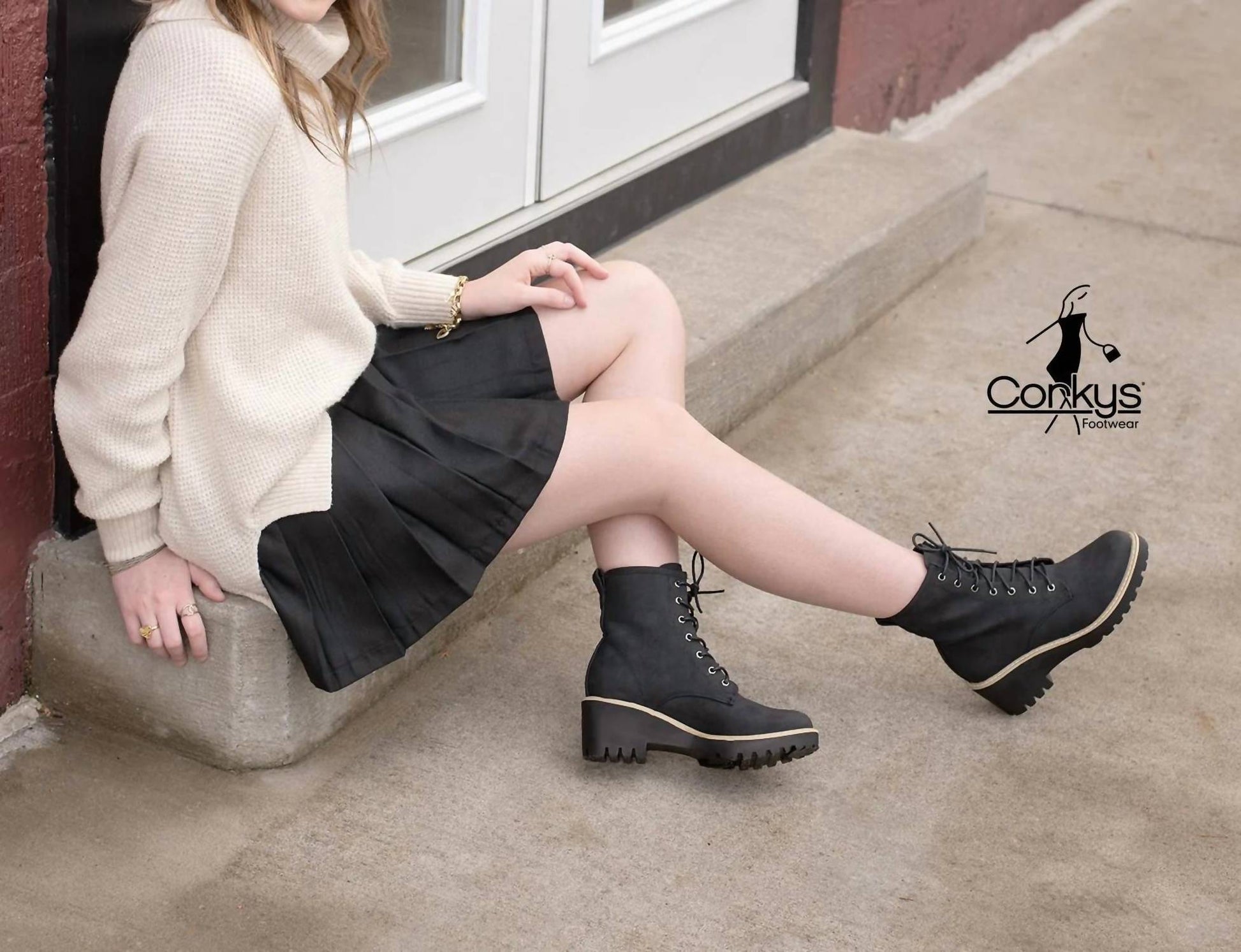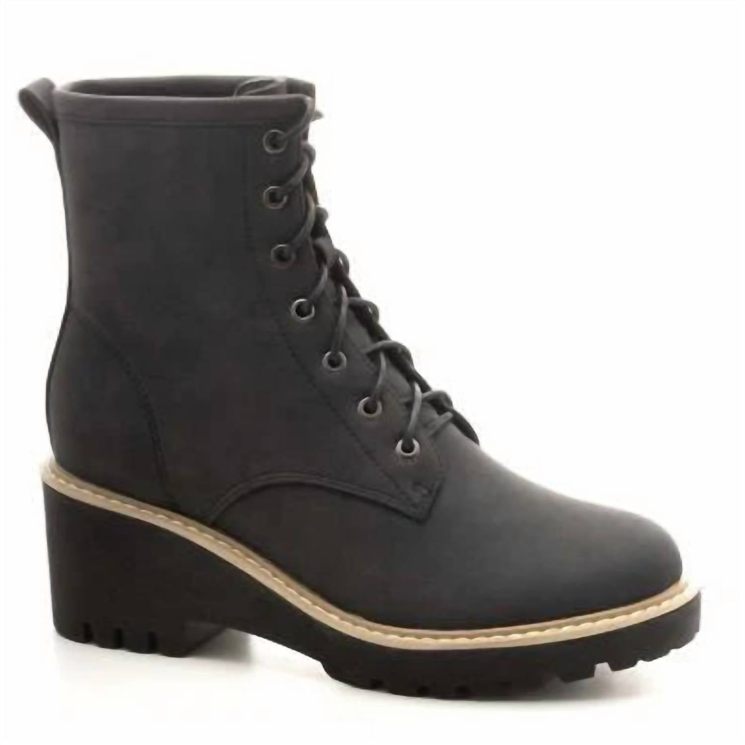 So versatile, you can wear these boots with your favorite jeans or even a dress for a more feminine feel. Step into style with the Women's Ghosted Boots by Corkys Footwear, a perfect blend of femininity and rugged charm. These black combat boots feature a 2.5" wedge cone heel and a 5" shaft designed for urban adventures. With a convenient inside zipper closure, they ensure ease of wear, while the cushioned insole provides all-day comfort. Suitable for travel and minimalist fall trends, these round-toe boots are ideal for New Year's Eve outings.