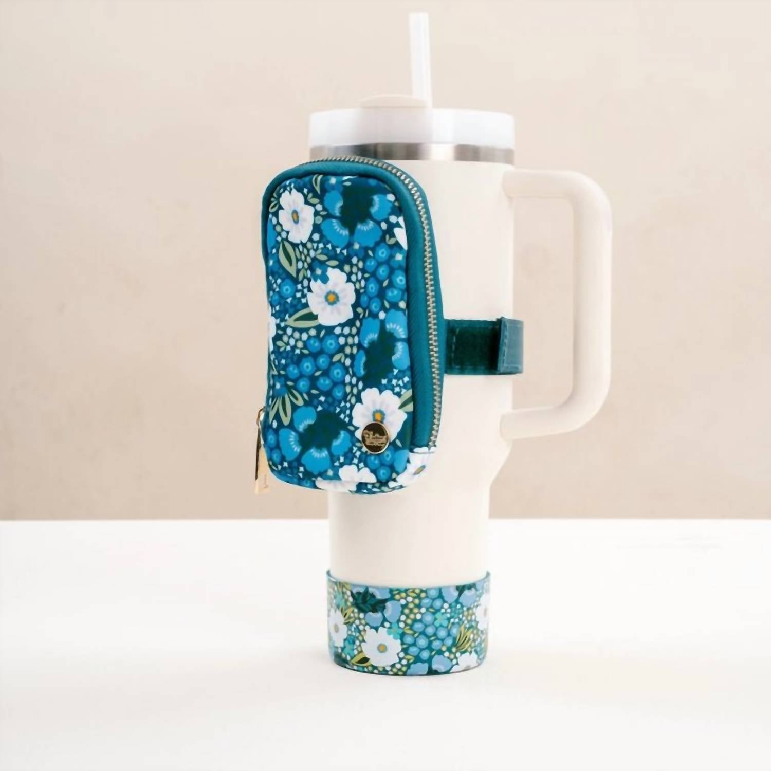 A stylish bag to use for makeup, skincare, or anything else you might want to travel with in style. Introducing the Women's Tumbler Fanny Pack by The Darling Effect, a stylish and practical accessory in vibrant blue. Crafted with water-resistant fabric, this pack is designed to fit snugly around a 40 oz. tumbler with an adjustable Velcro strap measuring 17 inches long for convenience. The pouch, with dimensions of 3.5" x 6", features a gusset side for easy pocket expansion, making it perfect for gym, school, or travel needs. Enjoy a versatile and lightweight design that keeps your essentials close and hands-free.