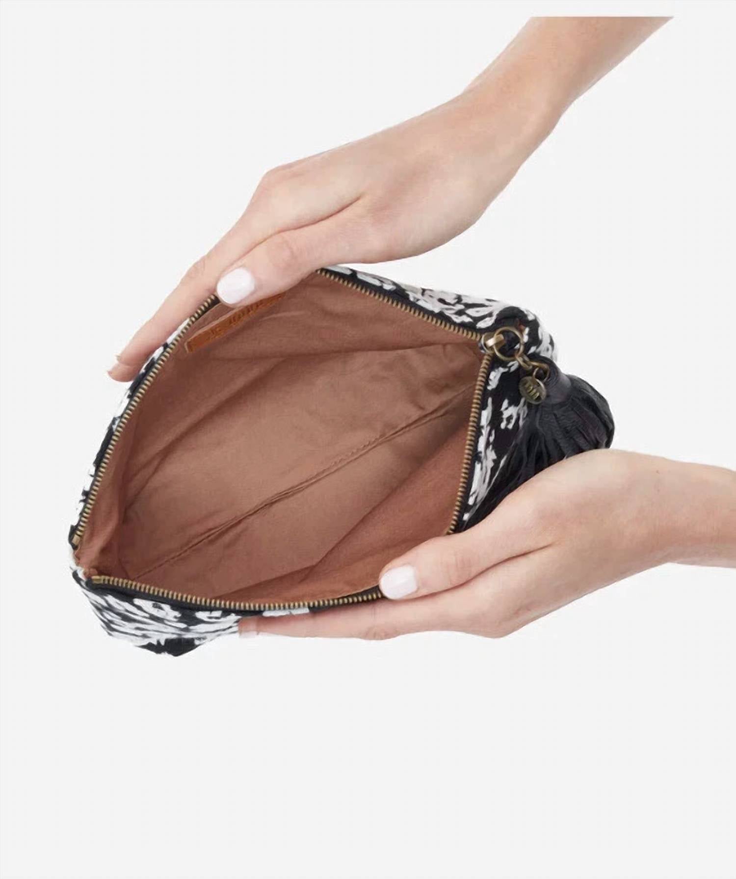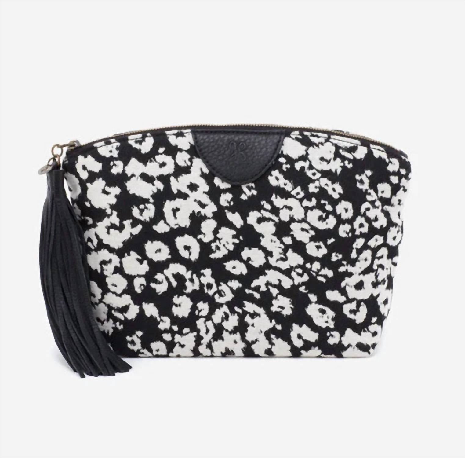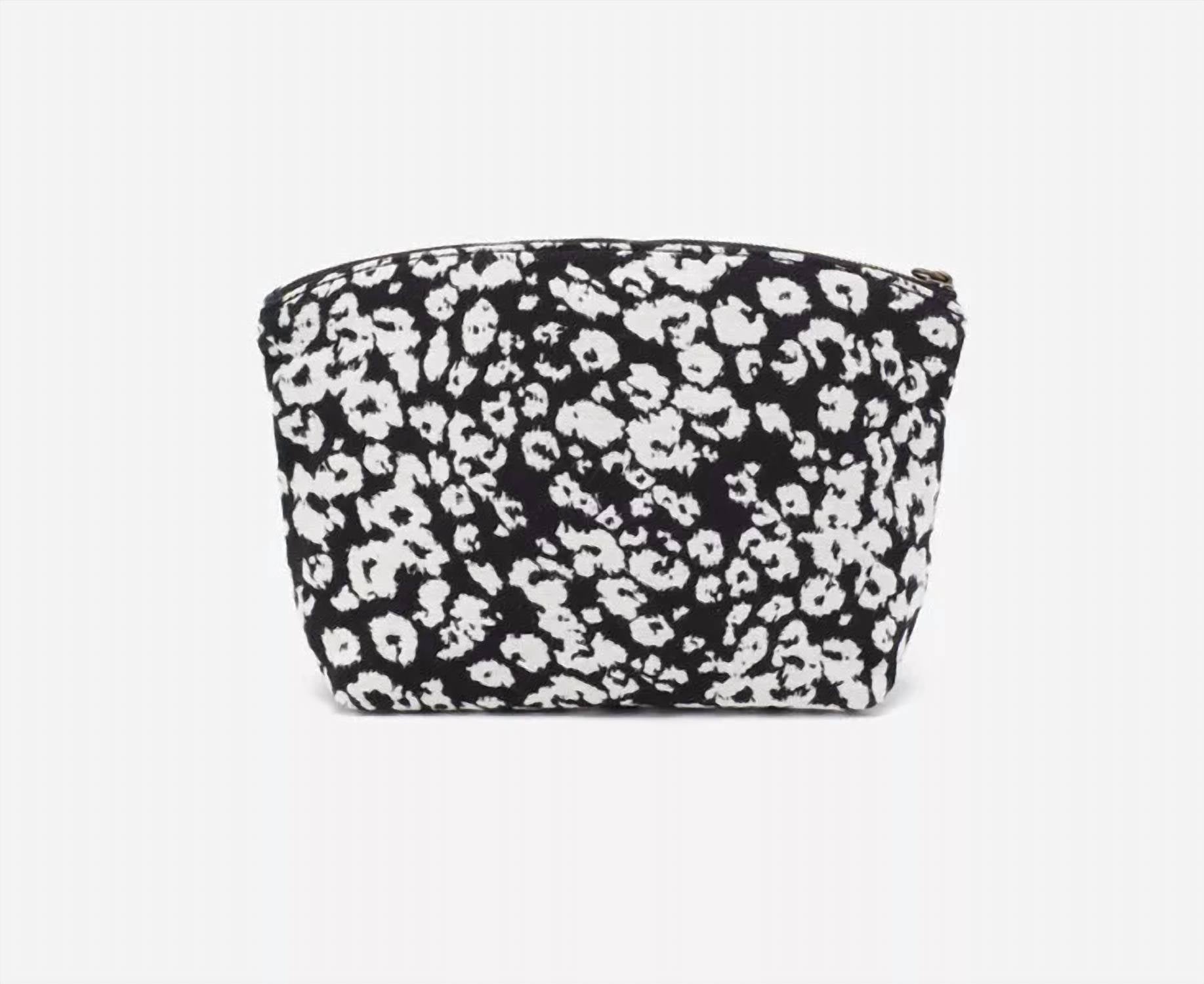 A stylish bag to use for makeup, skincare, or anything else you might want to travel with in style. Eye-catching White Leopard design, perfect for organizing your small yet essential items. Expertly crafted in HOBO's signature Vintage Hide leather. Equipped with brushed antique brass hardware and a top zip closure, combines style with functional design. Ideal for everyday use inside your larger HOBO bag or for travel convenience.