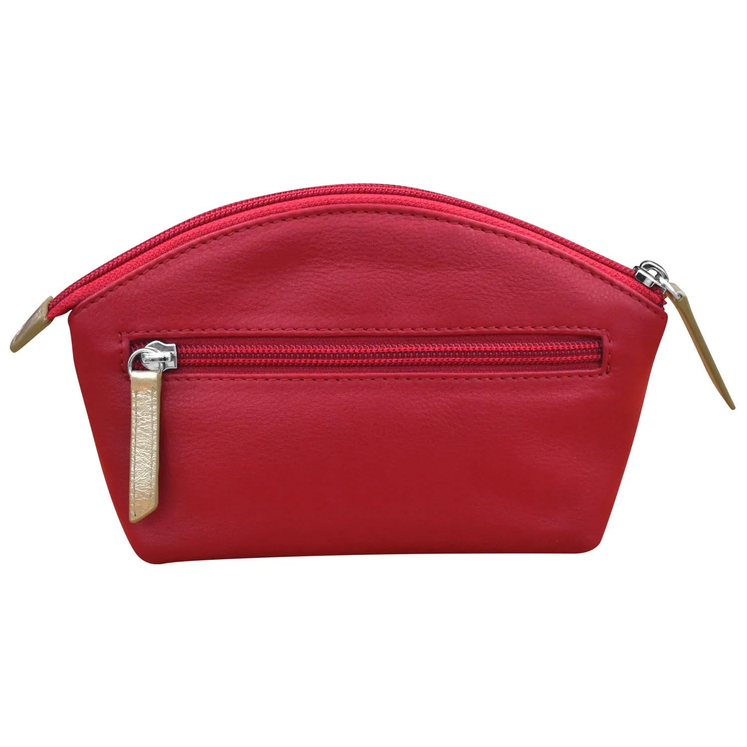 The perfect makeup bag for all your essentials. Smooth Leather • RFID blocking lining • Top zip closure • Front open pocket • Back zip pocket • Interior zip pocket • Dimensions: 7 x 4.5 x 1.5 in.