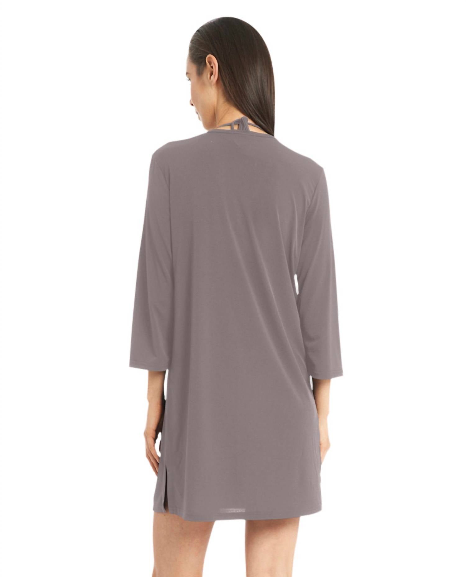 Elevate your poolside fashion effortlessly with the Quintessential 3/4 Sleeve Keyhole Cover-Up Dress by Jordan Taylor. Designed for the modern woman who appreciates both style and comfort, this cover-up features a high neckline with an alluring keyhole front detail that adds a touch of sophistication. The 3/4 sleeves provide just the right amount of coverage, perfect for those breezy beach days or casual resort strolls. Crafted from a luxurious blend of 94% nylon and 6% spandex, this dress offers a figure-flattering fit that moves with you. Its round hemline adds a playful, feminine flair, making it a versatile addition to your summer wardrobe. Available in a rich brown hue, this cover-up is not only stylish but also easy to pair with any swimwear. True to size, you can trust that this piece will become a reliable favorite for all your sun-soaked adventures.