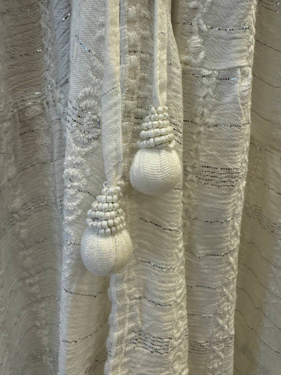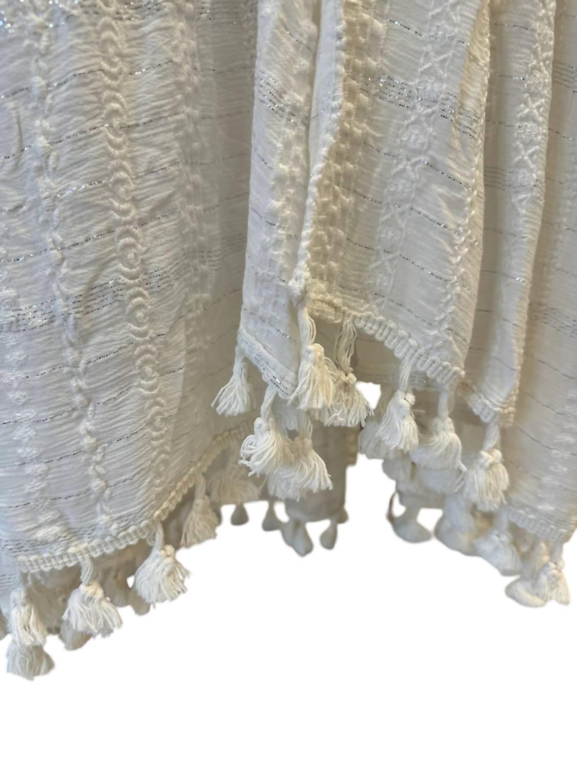This Addaline Embroidered Coverup Dress features a plunging neckline, open center, and playful tassel details. Crafted with intricate embroidery and a self-tie waist for a custom fit, it’s perfect for beach walks.