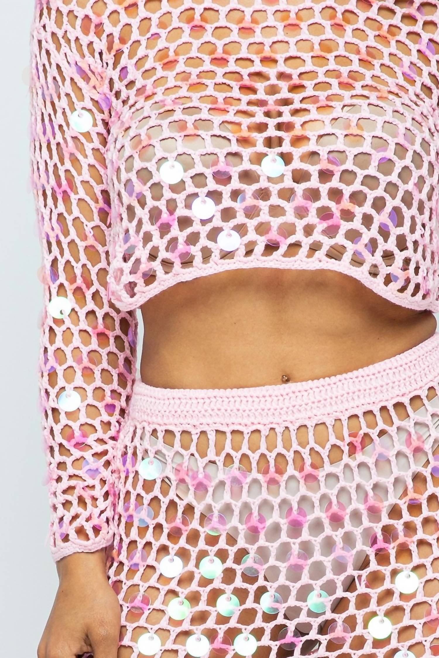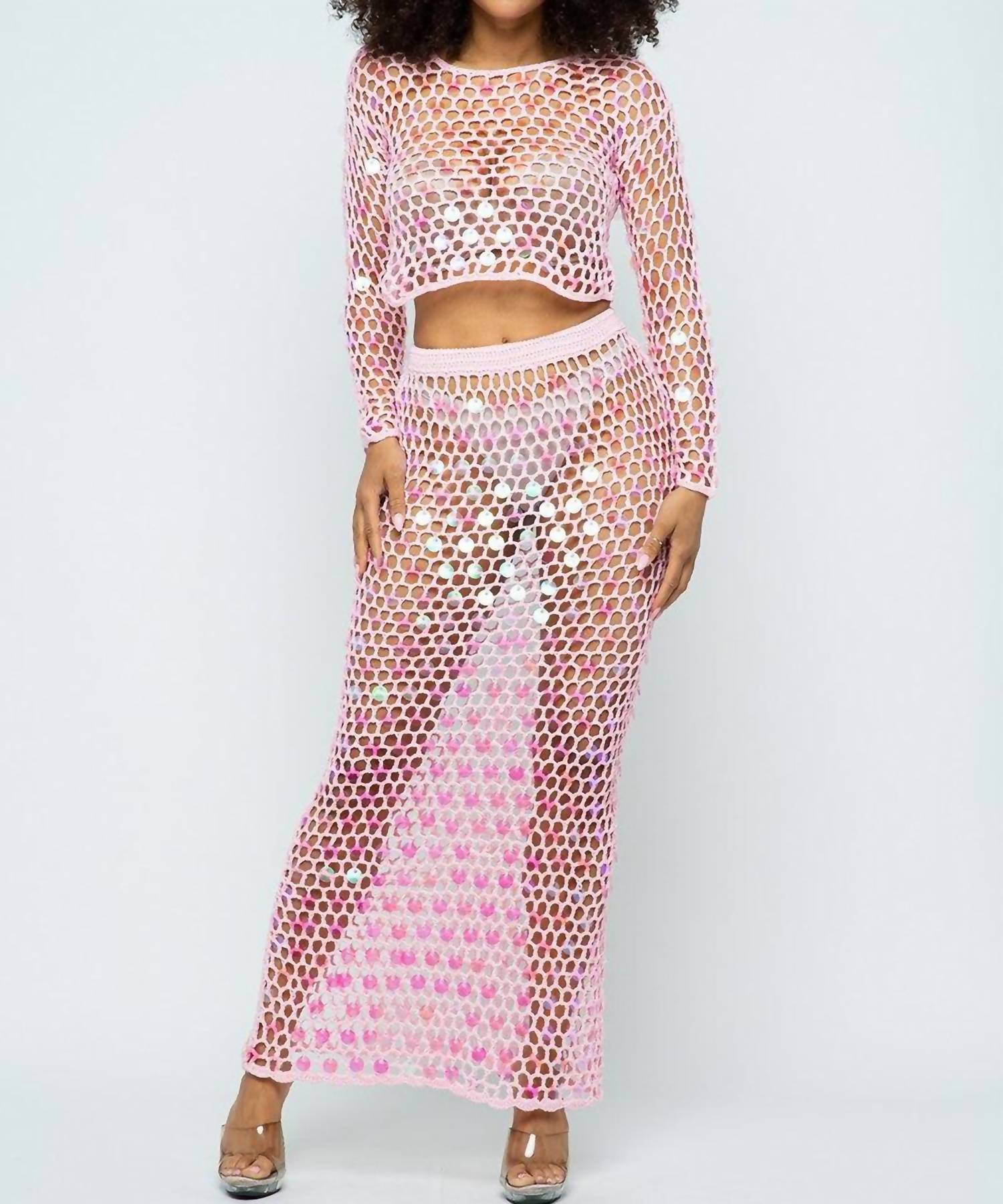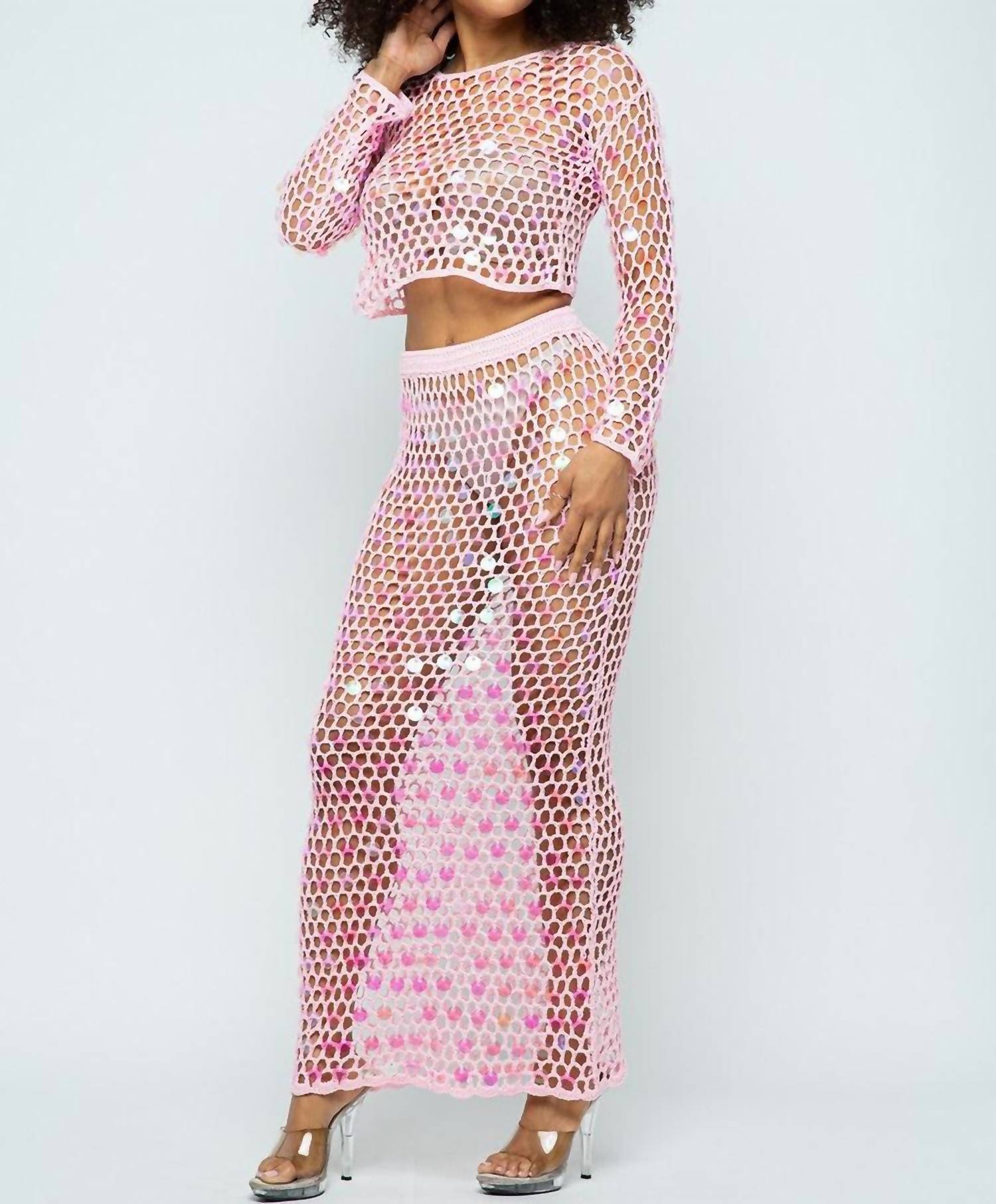 Hera Collection - Shine Bright Fishnet Crochet Top And Skirt Set
