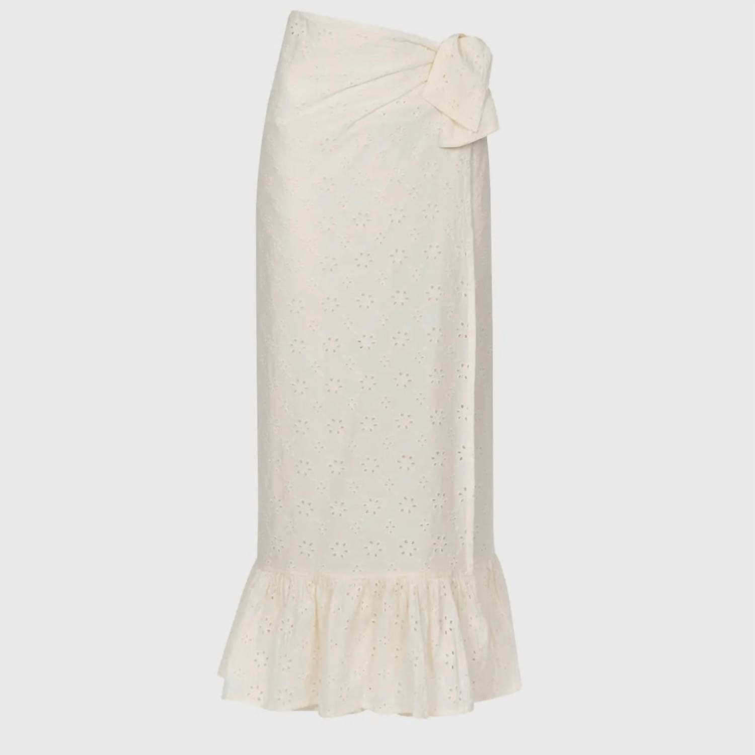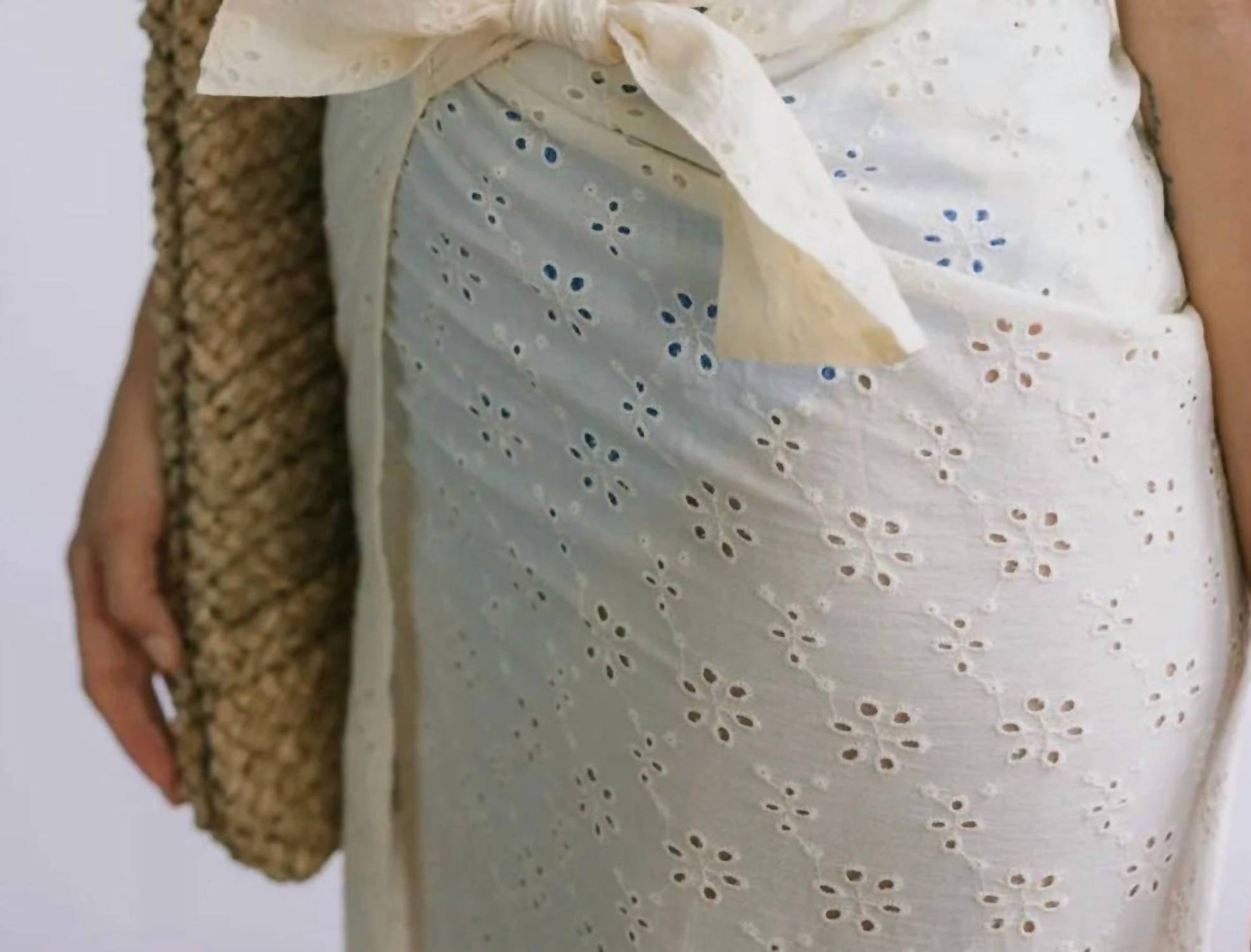 You're go-to coverup for pool parties, beach days and long weekends. Introducing the Ivory Eyelet Vienna Sarong by Sunshine Tienda, a versatile and stylish beach cover-up. Made from 100% lightweight cotton, this piece can be effortlessly styled as a skirt, dress, or scarf, making it an essential for any summer outing. Closure: Ties for easy securing. Care: Hand wash separately in cold water. Size: Measures 71", suitable for XXS to XL.