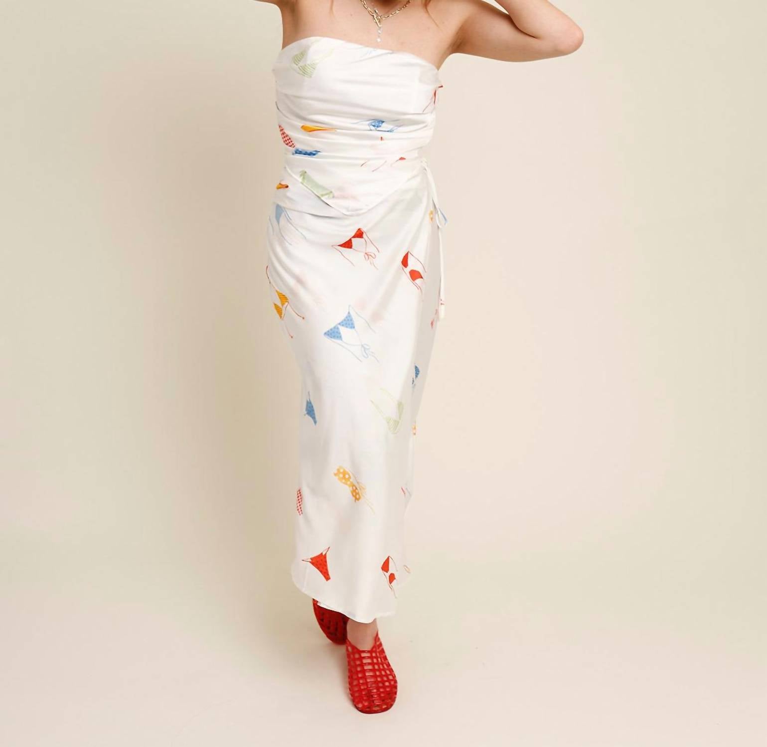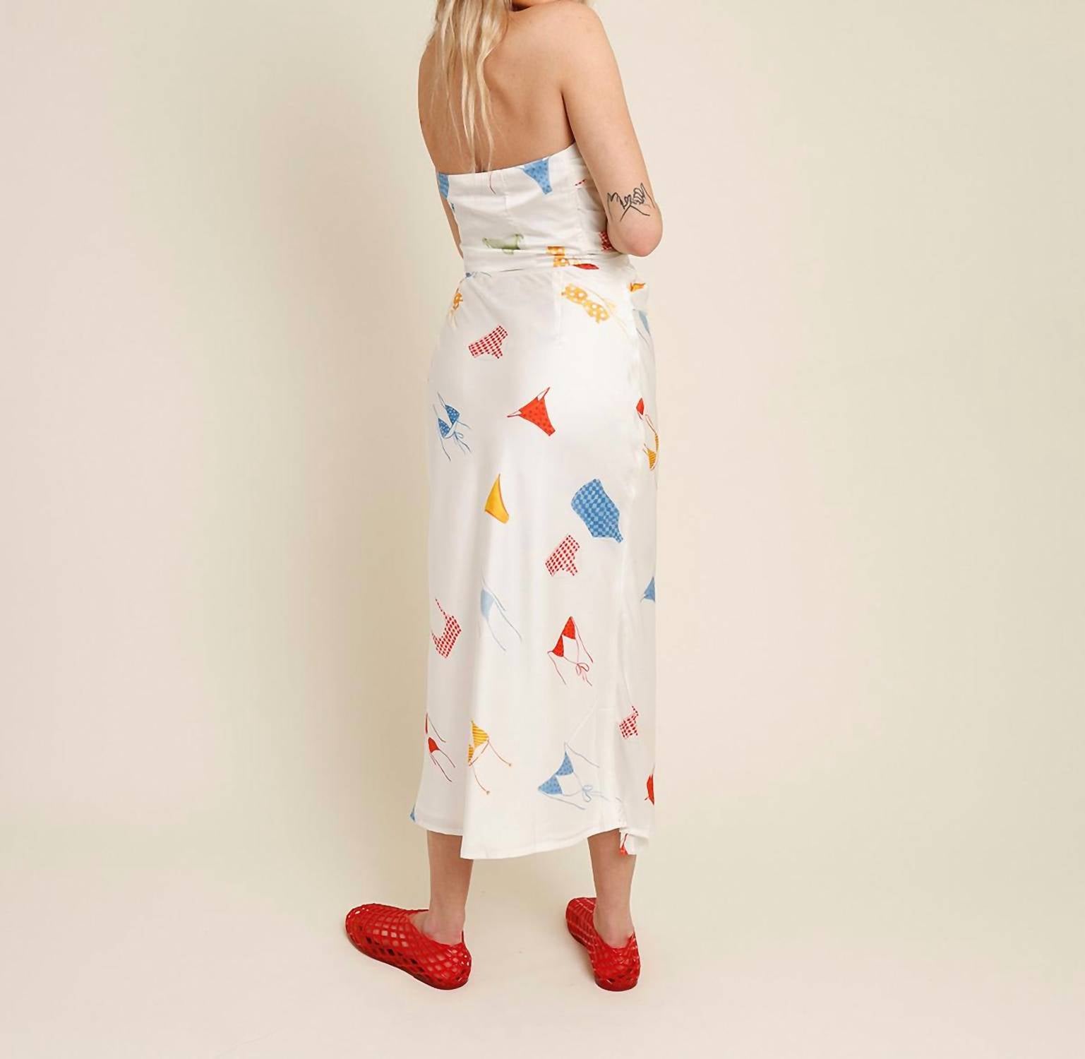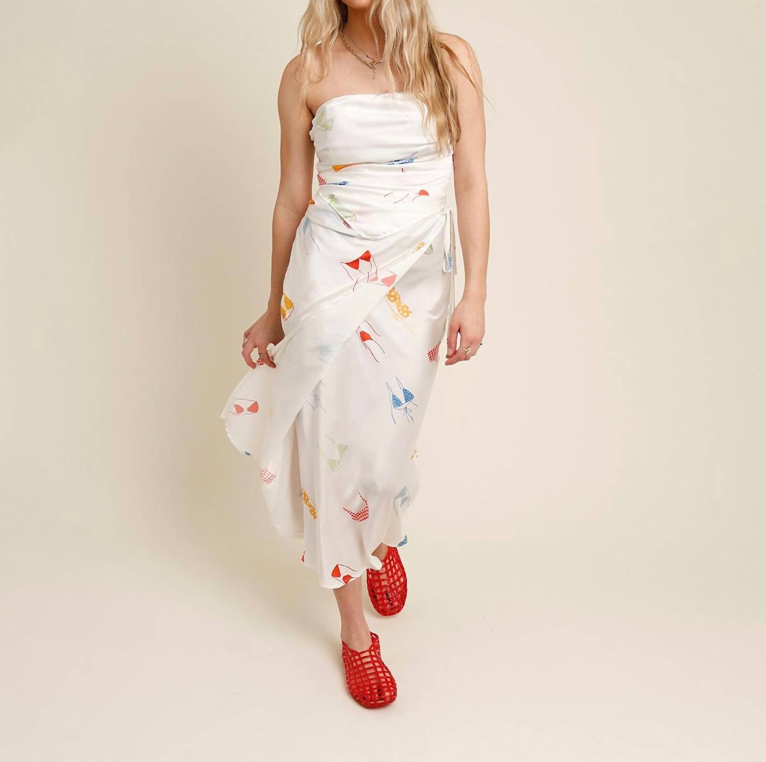 A comfy-all-day coverup that works just as good at dinner as it does by the pool. Introducing the Bikini Babe Bandana Top by Emory Park, a strapless bandeau swim top in lively white with a graphic bikini print. Made from durable polyester, this boho chic piece features a hidden side zipper for secure closure. Perfect for vacation getaways or summer outings, this coverup offers classic coverage with a bandana style flair.