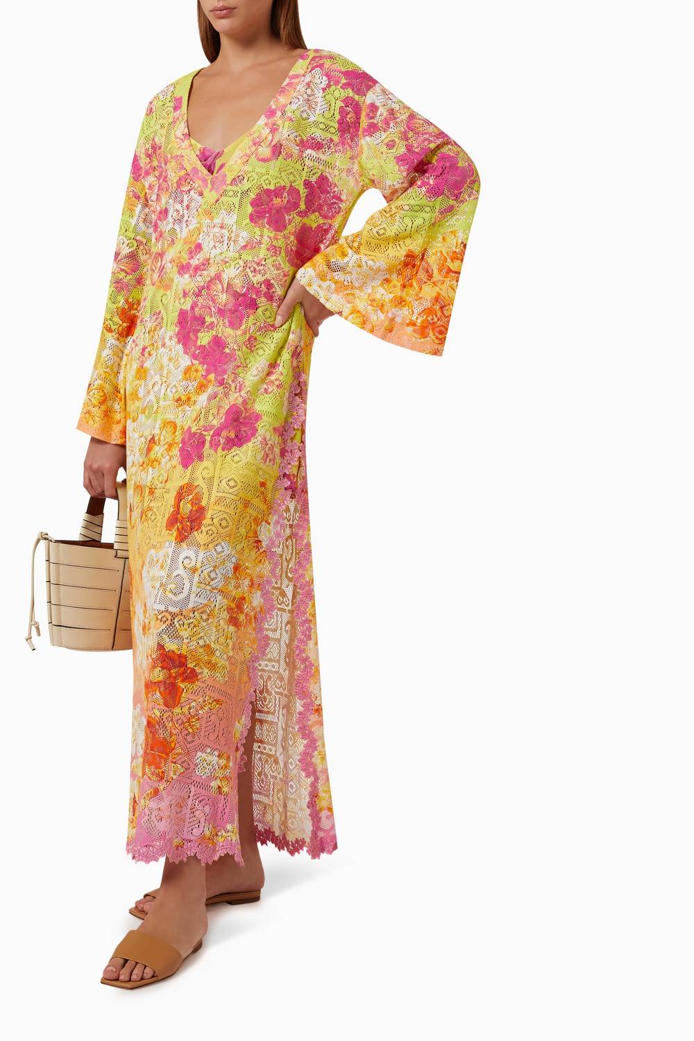 You're go-to coverup for pool parties, beach days and long weekends. Designed in India from a comfortable cotton blend, this lightweight coverup showcases a stylish geometric pattern and offers a relaxed fit for all-day ease. Fully lined for complete coverage, it promises comfort and sophistication. Machine wash.
