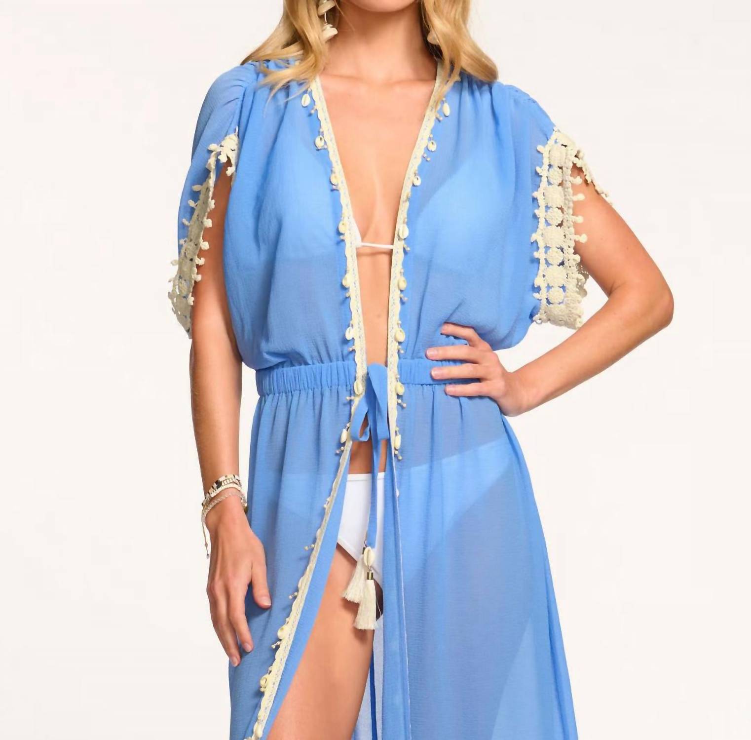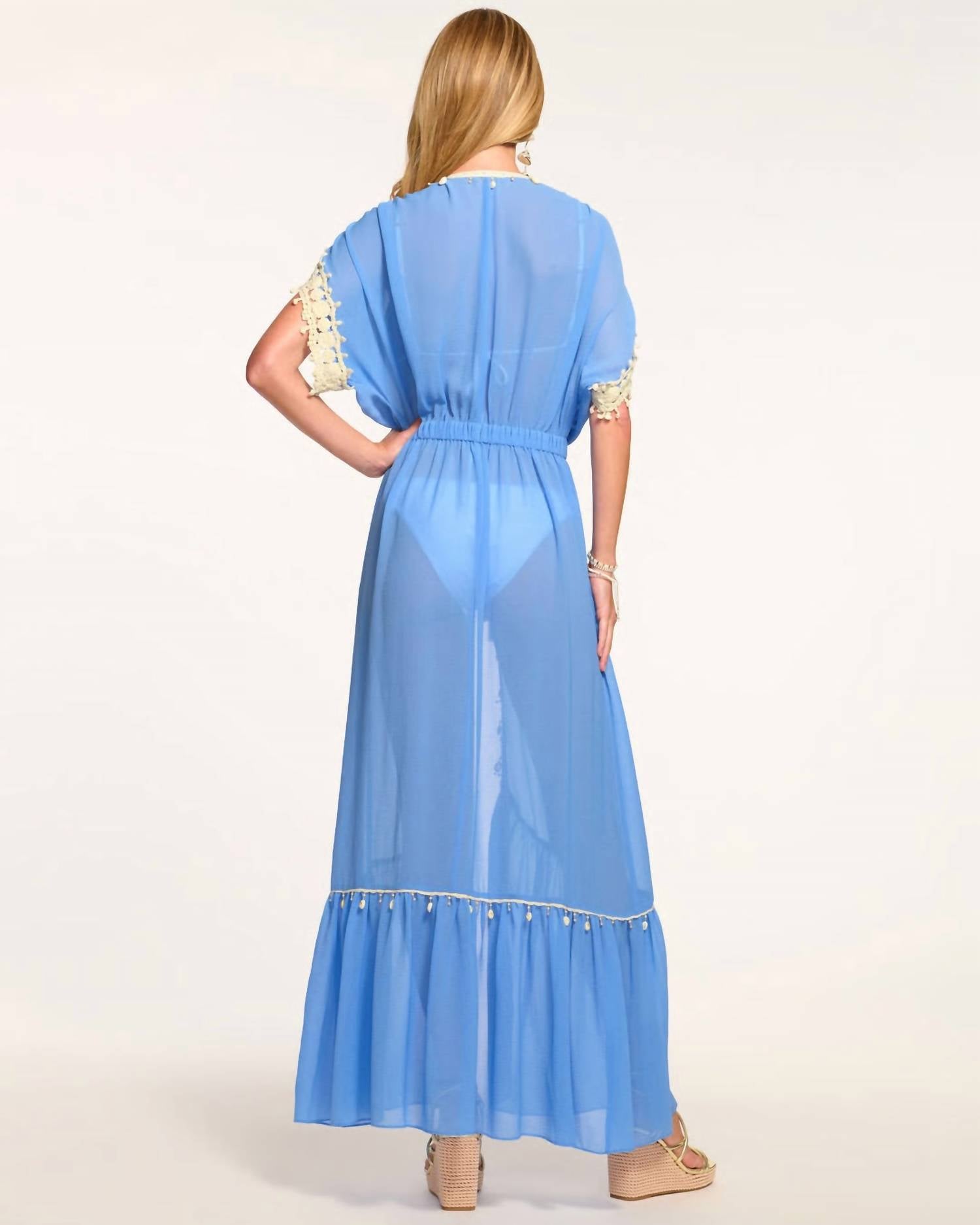This Nikolai Coverup Dress features extended shoulders, shell embellishments, and an elastic waistband with a self-tie for adjustable comfort. Designed with an open center for a breezy look, it’s perfect for the beach or poolside.
