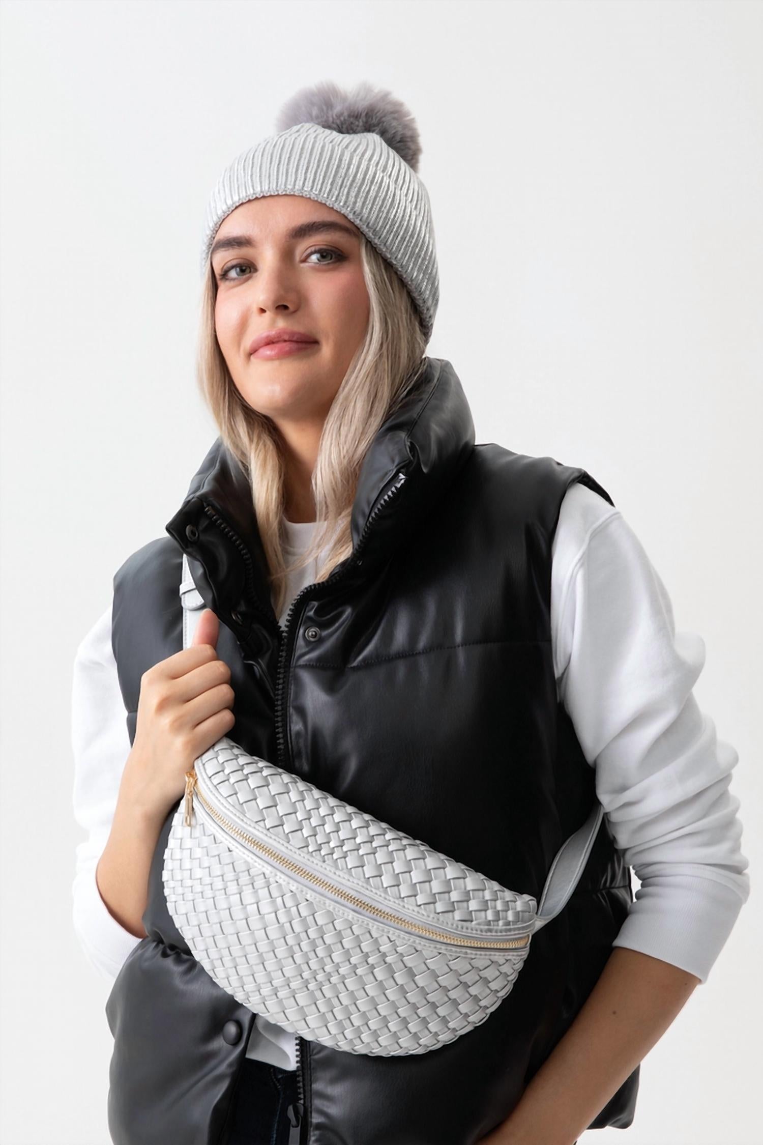 The crossbody bag is a trend that is here to stay and we especially love this style. Elevate your style with the Women's Blythe Sling Bag by Shiraleah, a chic accessory in sophisticated stone. Crafted from woven smooth PU with gold hardware, this bag offers a modern, vegan-friendly appeal. It features an adjustable strap for versatile wear, a top zip closure, and one inner zip pocket for secure storage. Dimensions: 10.5" L x 3" W x 6" H; Adjustable strap length: 15". Made in China.