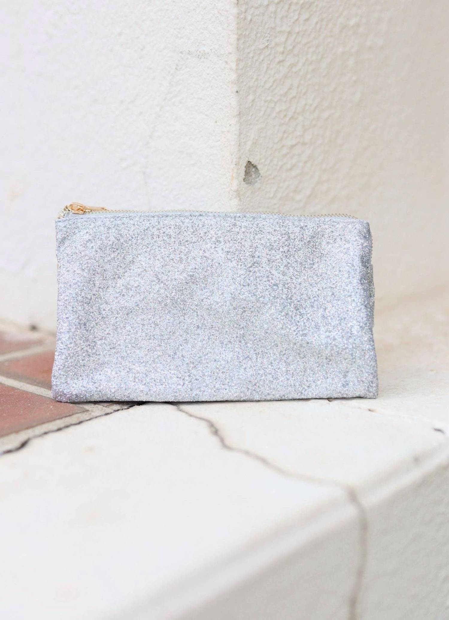This crossbody bag will be your go-to bag of the season. Introducing the Caroline Hill Liz 3 Compartment Crossbody Bag, a chic accessory in dazzling Silver Glitter. Made from luxurious faux leather, this versatile bag features dimensions of 5" in height and 8.75" in width, providing ample space for your essentials. Designed with practicality in mind, it includes both a crossbody and a wristlet strap, an internal zip compartment, and credit card slots. Perfect for standalone use or for keeping your larger bag organized.