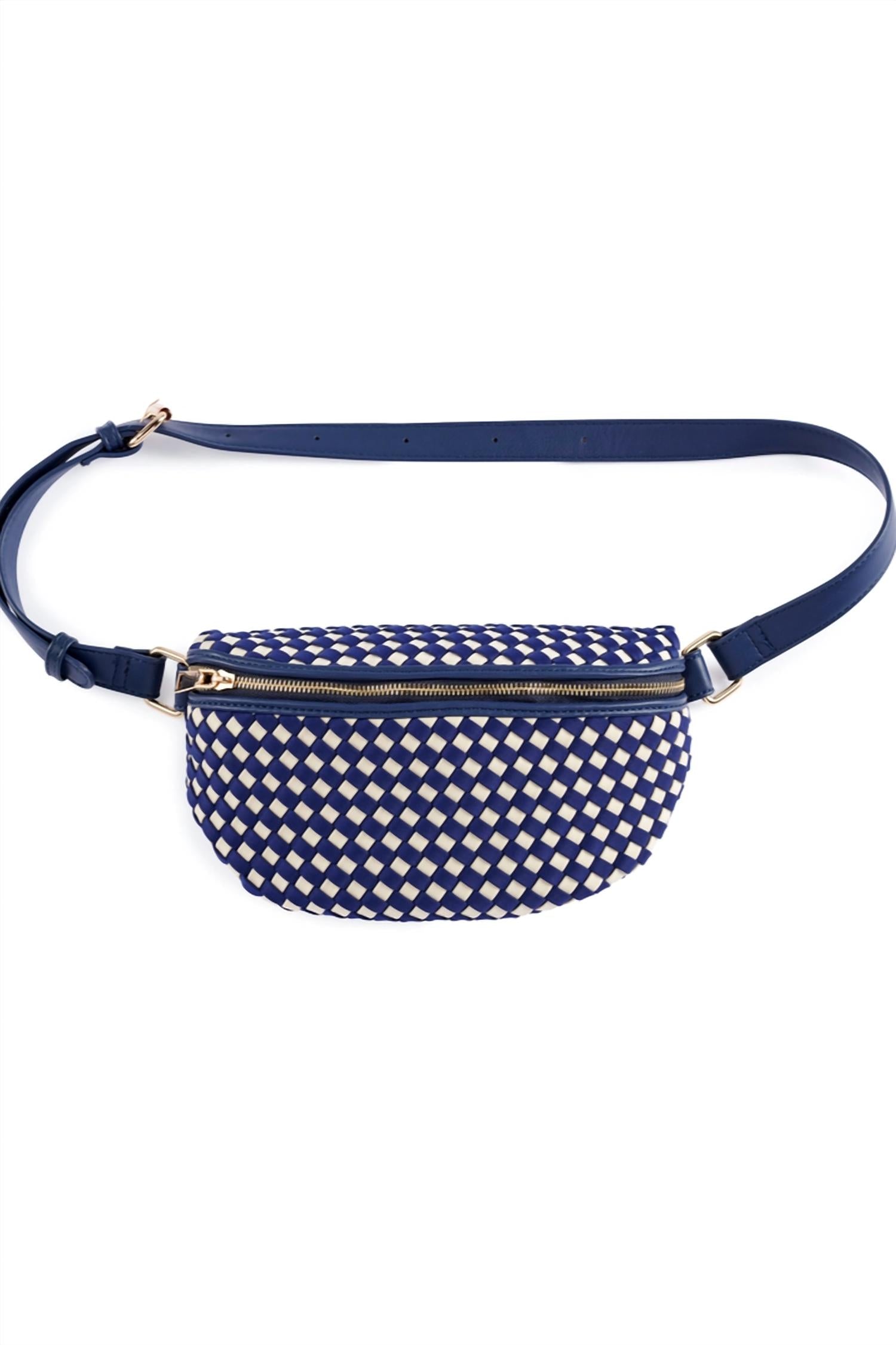 A casual and cute take on everyone's favorite crossbody bag. Introducing the Women's Val Sling Bag by Shiraleah, an embodiment of hands-free functionality and standout style in a sophisticated navy hue. This crossbody bag is handwoven from premium Spandex, Nylon, and PU, showcasing a chic basket-weave design with gold hardware. It features an adjustable strap for versatile wear and a top zip closure for secure storage. With measurements of L 10.5” x W 3” x H 6", plus an adjustable strap of 15”, it includes one inner zip pocket to keep your essentials organized.
