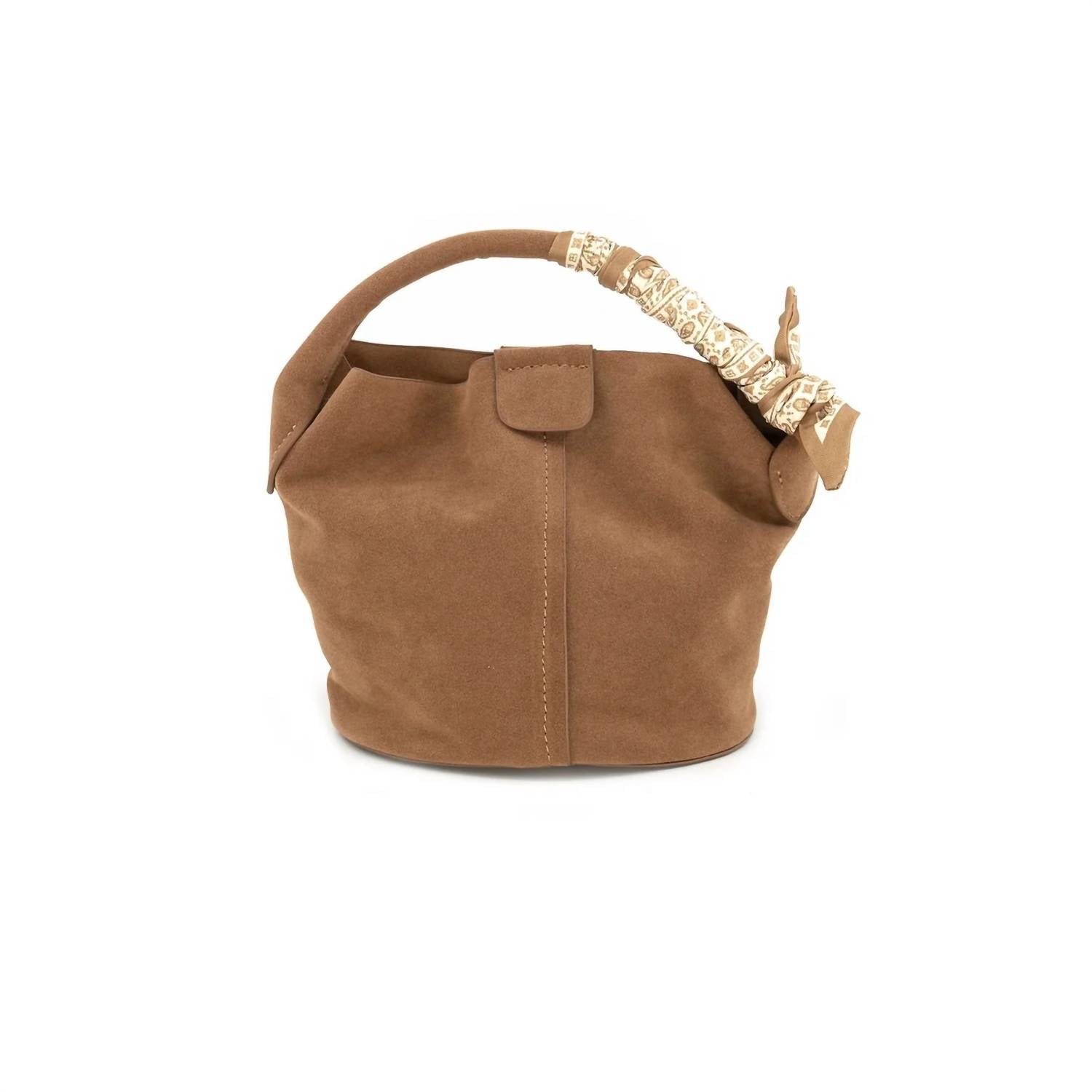 The crossbody bag is a trend that is here to stay and we especially love this style. Deanne is a mini bucket bag made of faux suede material and measures 9 x 6.5 x 5 inches. It has a crossbody strap and a zipped center pocket.