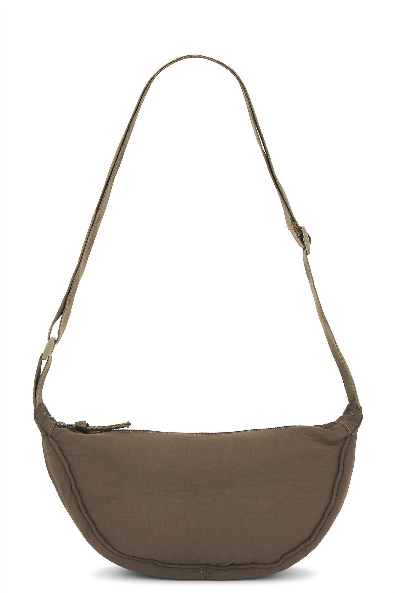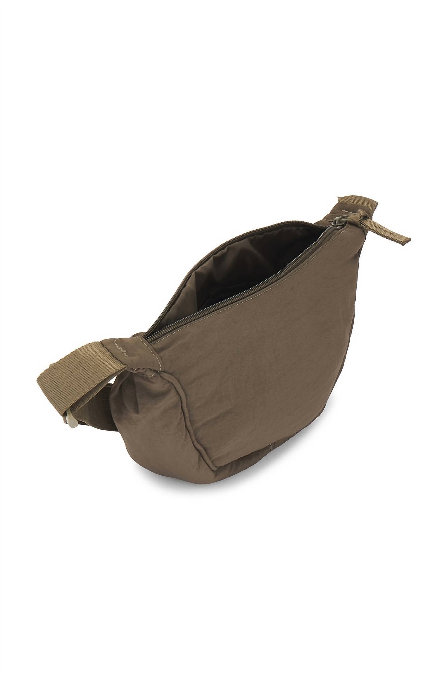 The crossbody bag is a trend that is here to stay and we especially love this style. Discover the Women's Nylon Crossbody Bag by Hat Attack, a stylish and practical accessory in olive. Made from 100% nylon, this bag is perfect for staying hands-free during errands or hikes. With adjustable straps, it can be worn as a crossbody or fanny pack, featuring a zipper opening of 16cm, floor width of 8cm, and a handle 3cm x 120cm with a drop of 56cm. Care: Spot clean with a damp cloth. Dimensions: 9.5" width, 5.5" height, 2.4" depth. Weight: 116g.