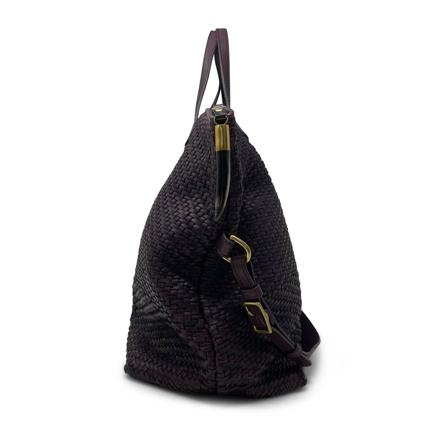 A casual and cute take on everyone's favorite crossbody bag. The Woven Morleigh Foldover Bag by KEMPTON & Co. in Oxblood is the epitome of versatility and style. Crafted from buttery soft handwoven cowhide leather, it features adjustable, convertible, and detachable crossbody and leather straps. This bag, with a spacious interior made of soft cotton twill, measures 11" W x 7" D x 13" H, handling multiple roles from a laptop bag to a chic tote. Its sturdy design is complemented by solid brass hardware and a large upcycled Ankole cow horn toggle, showcasing both beauty and sustainability.