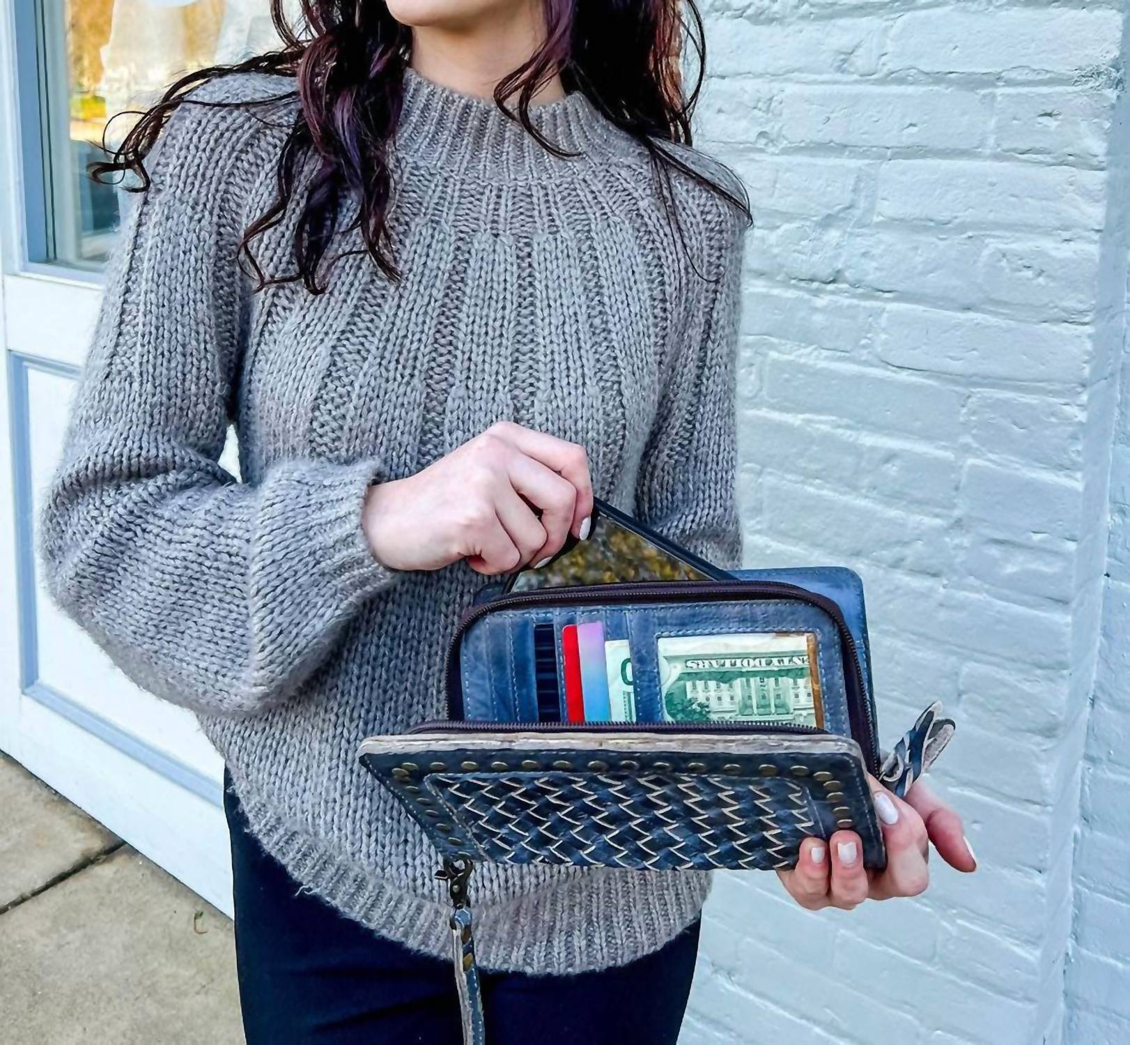 The crossbody bag is a trend that is here to stay and we especially love this style. Discover the Women's Organizer Crossbody Bag by Never Mind, a unique accessory in Antiqued Blue that combines functionality with distinctive style. Crafted from leather through a meticulous hand-dyeing process, each bag boasts a unique vintage look. It features twin zip closure compartments, an interior zip pocket with several slip pockets, and an ID slot with multiple card slots. With dimensions of 9" width, 5.5" height, and 2" depth, the adjustable shoulder strap offers a convenient drop from 26" to 30".
