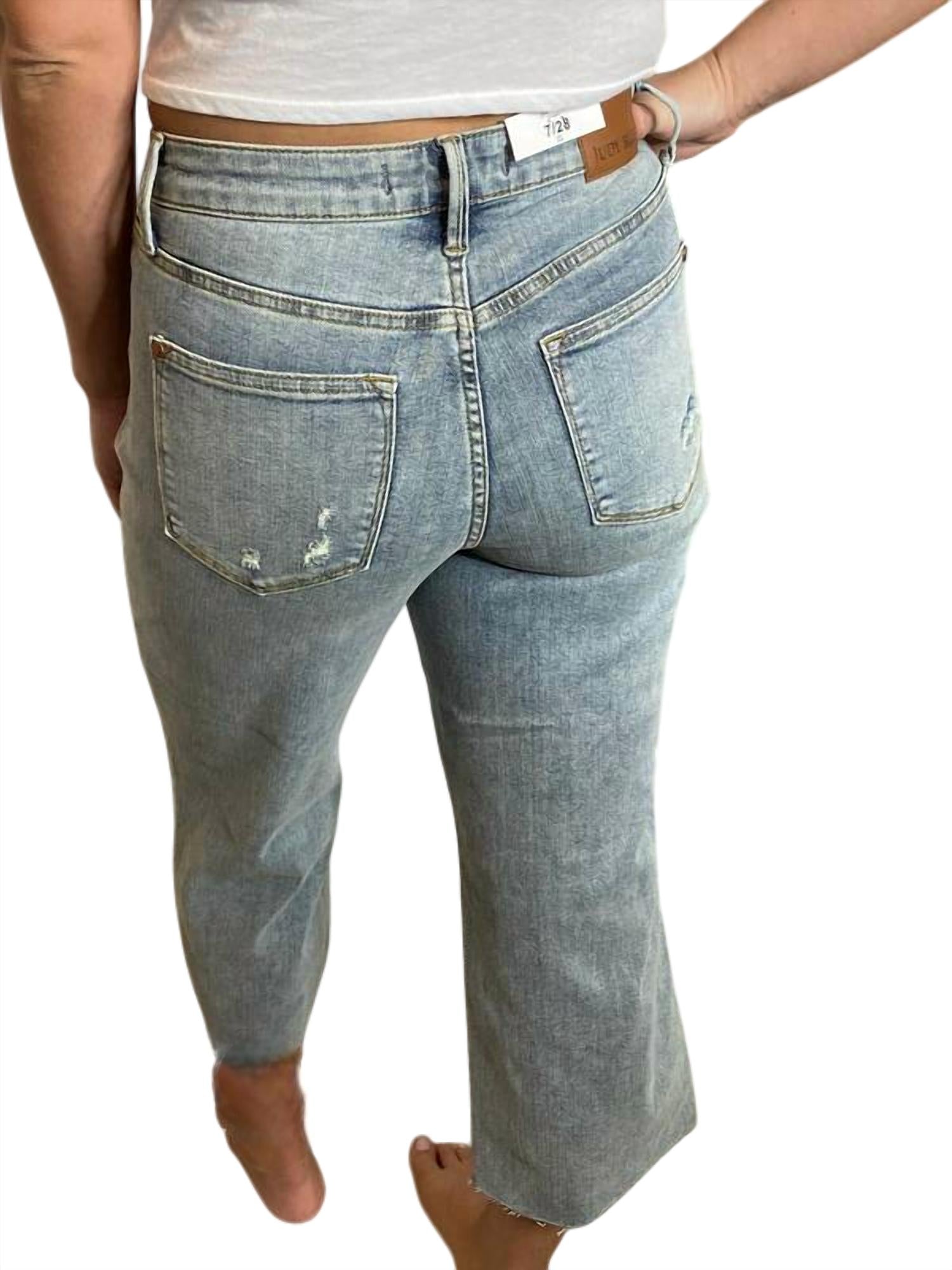 Judy Blue - Mid Rise Tummy Control Raw Hem Wide Crops
