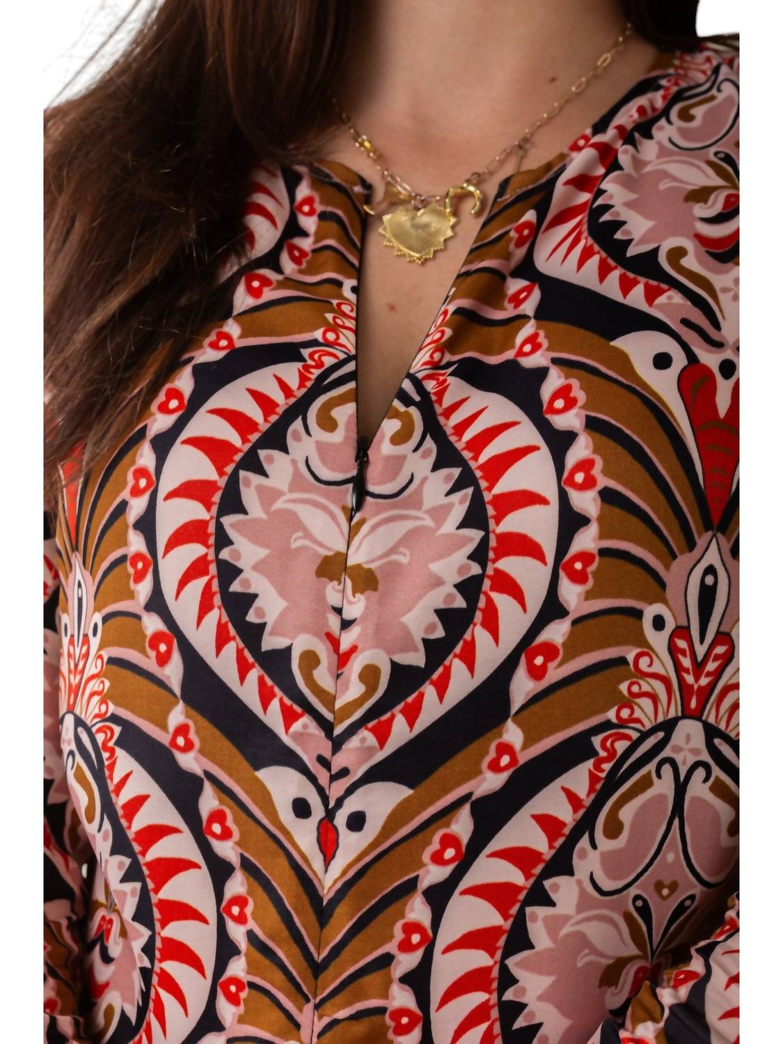 Round neckline. Long sleeves with zippers at wrists. Zipper closure (front). Midi length flared hem. 100% Viscose. Machine wash cold, line dry or dry clean.