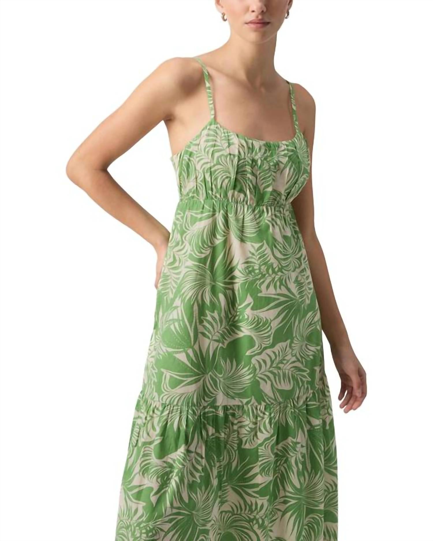 This maxidress features a relaxed fit with a pullover style and an A-line silhouette. It has a straight-across neckline, adjustable thin spaghetti straps, and a cinched waistline with a tiered skirt. The straight hem completes the look. Made from 100% rayon, it has a length of 47 inches. Machine wash, imported.