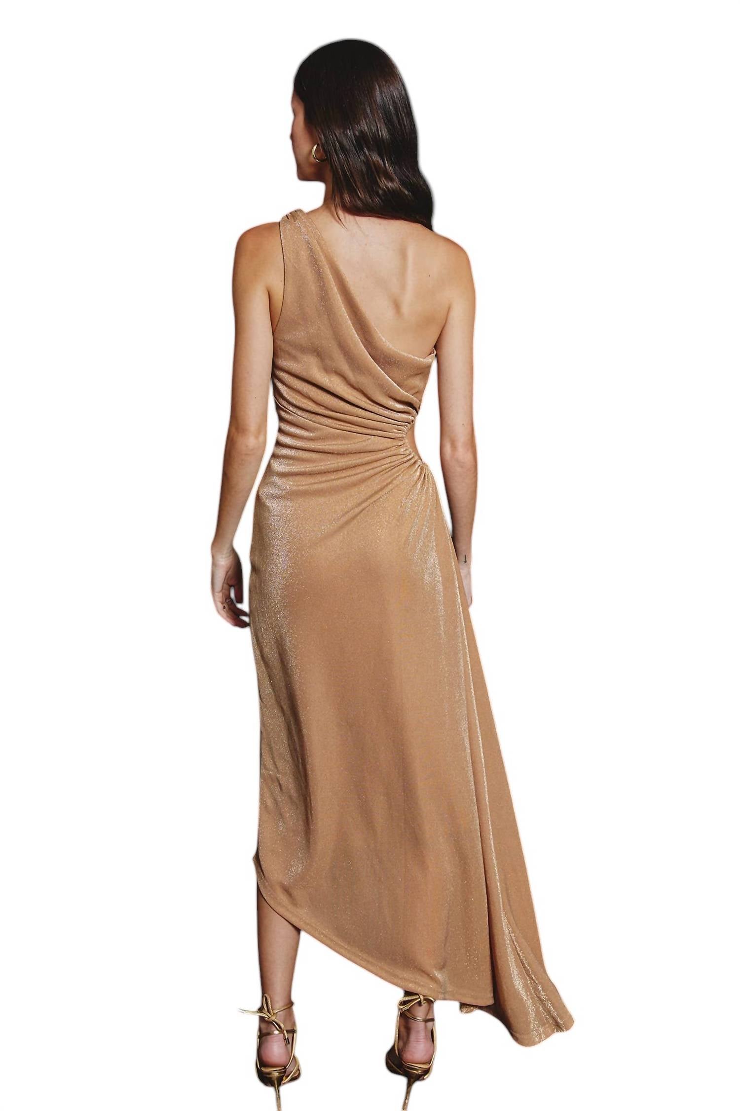 This sleeveless, off-the-shoulder ensemble features a shimmering asymmetrical design, crafted from a nylon blend with a metallic finish, ensuring you shine at any event. The fit and flare silhouette is enhanced by a stylish side cutout and asymmetrical hem for a daring yet chic look. Closure is easily managed with a hidden side zipper, and the dress is fully lined for comfort. Available in a stunning hue, the Pearlie captures a bold yet timeless essence.