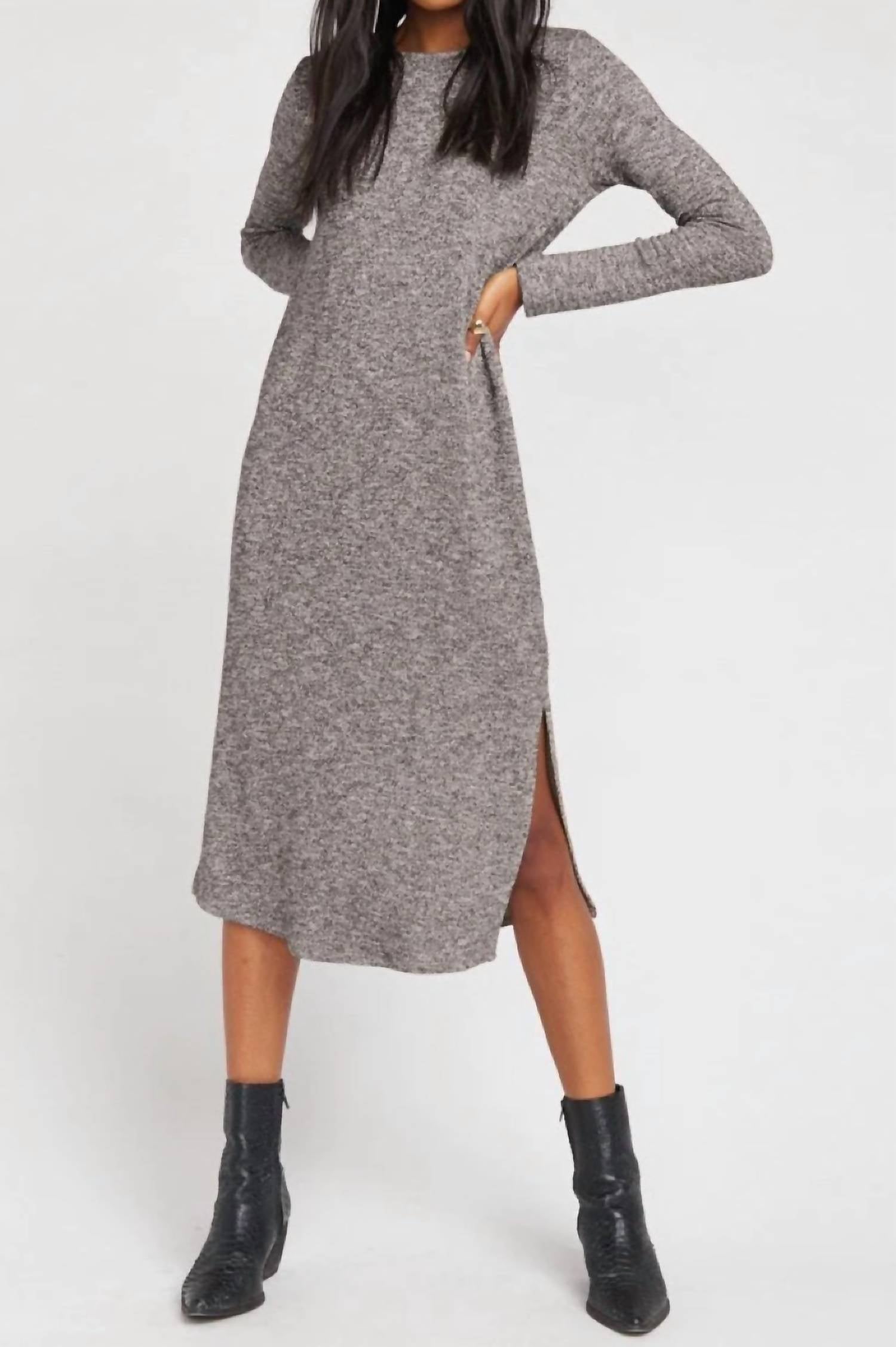 This flowy sequin midi dress is an easy fit and features two side slits for easy flow and movement. Outer: 92% Nylon, 8% Spandex. Lining: 100% Polyester. Fully lined. We recommend ordering true to size. 54" Shoulder to Hem.