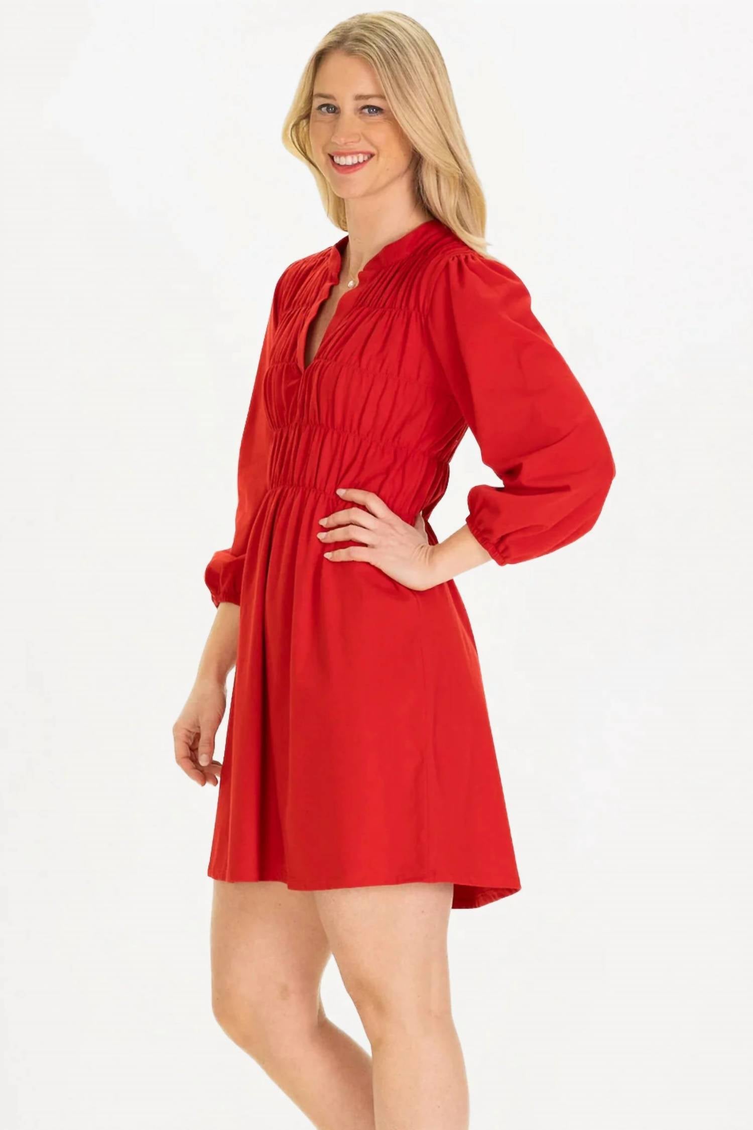 The kind of easy and flattering dress you'll be reaching for all season long. Elevate your wardrobe with the Hyacinth Dress by Duffield Lane in a striking Red Holly Berry hue. This dress boasts long puff sleeves, a fit-and-flare design, and a stylish V-neckline, crafted from a Signature Stretch Cotton blend featuring cotton and spandex for comfort and movement. Made in Peru, it is a perfect piece for the cooler months and is designed as a versatile mini A-line silhouette. Closure is easy with a pull-on style, making it an effortless choice for day-to-night transitions.