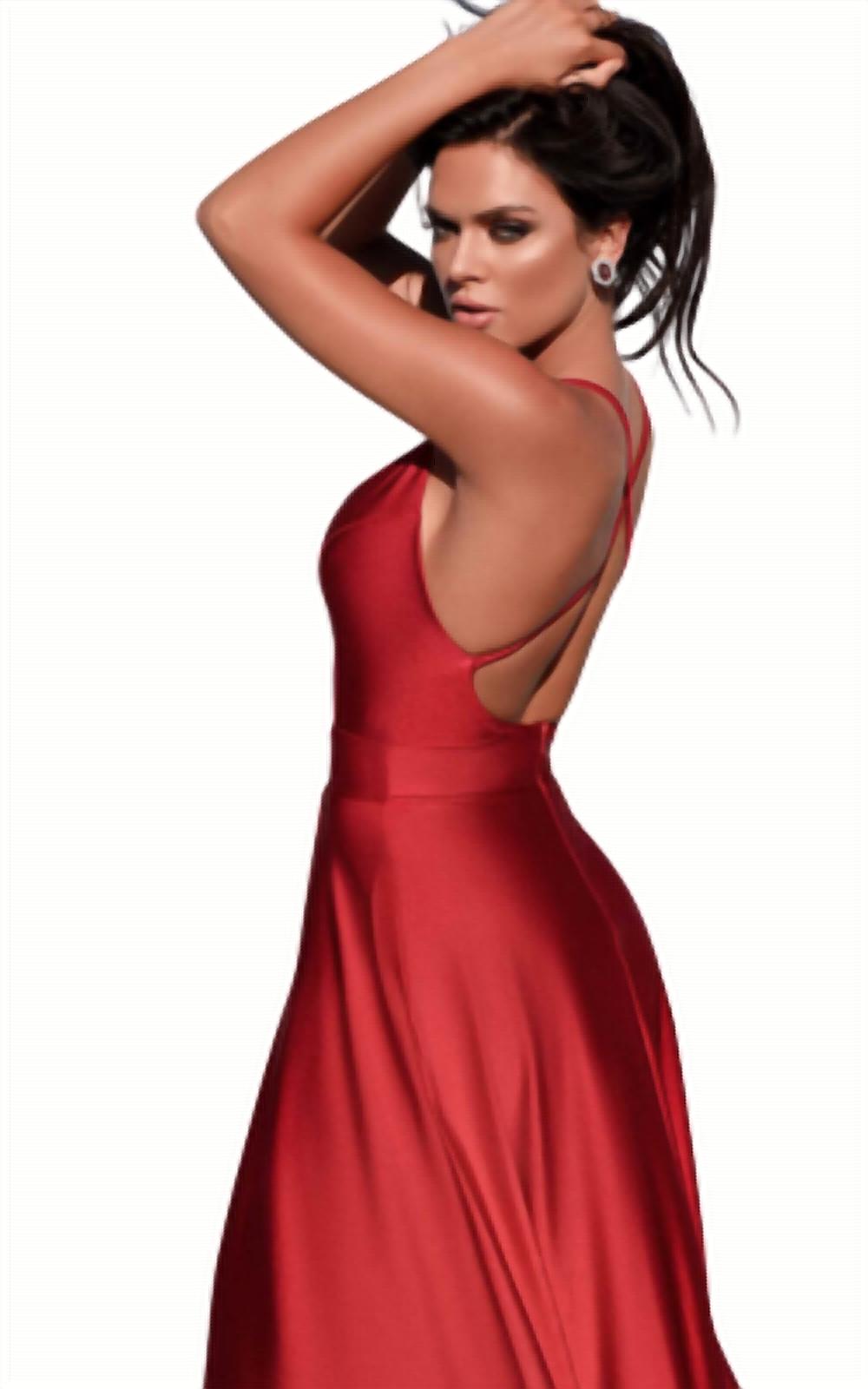 Beet red high slit criss cross open back jersey gown. Runs small. Dry clean only.