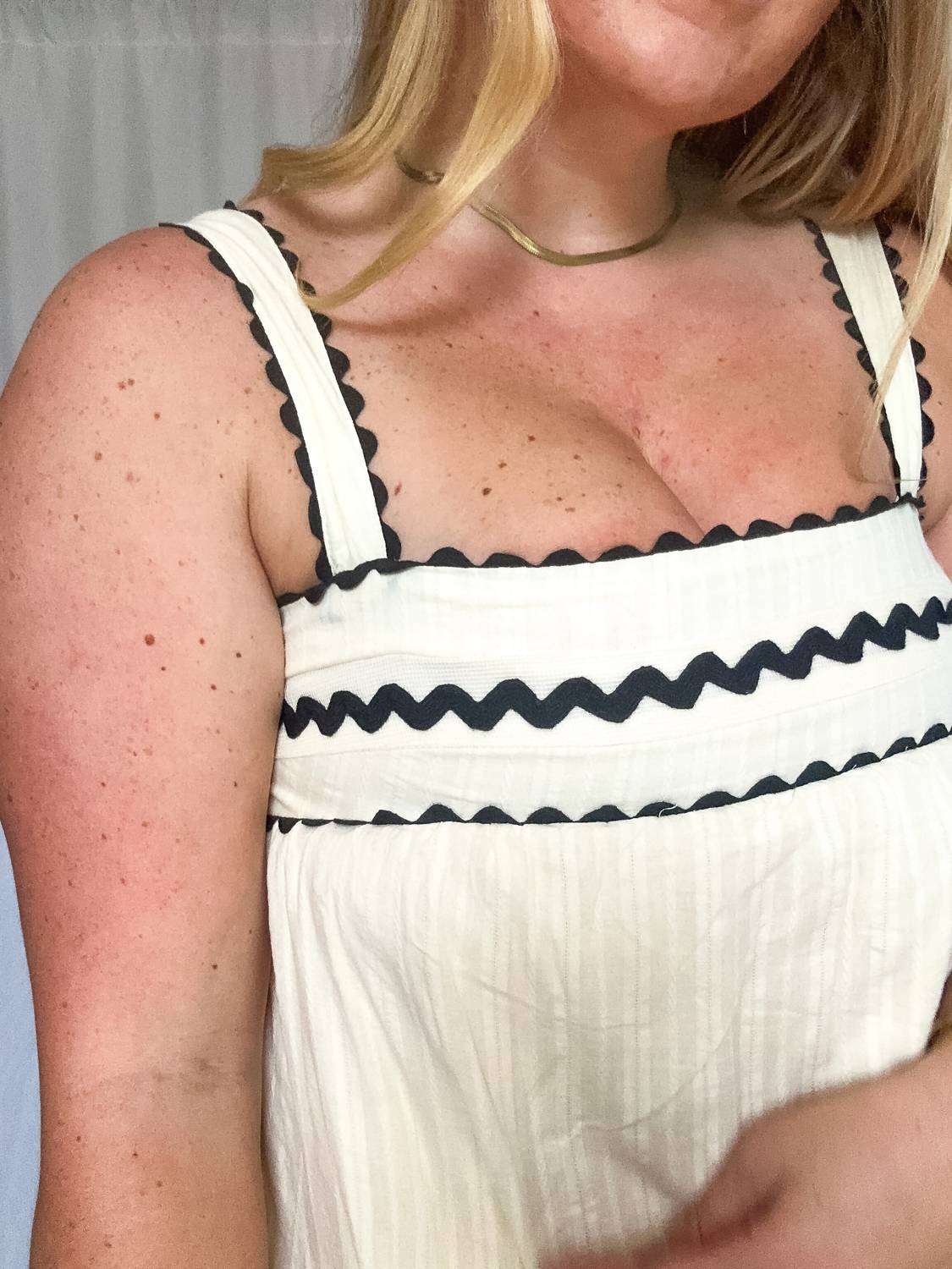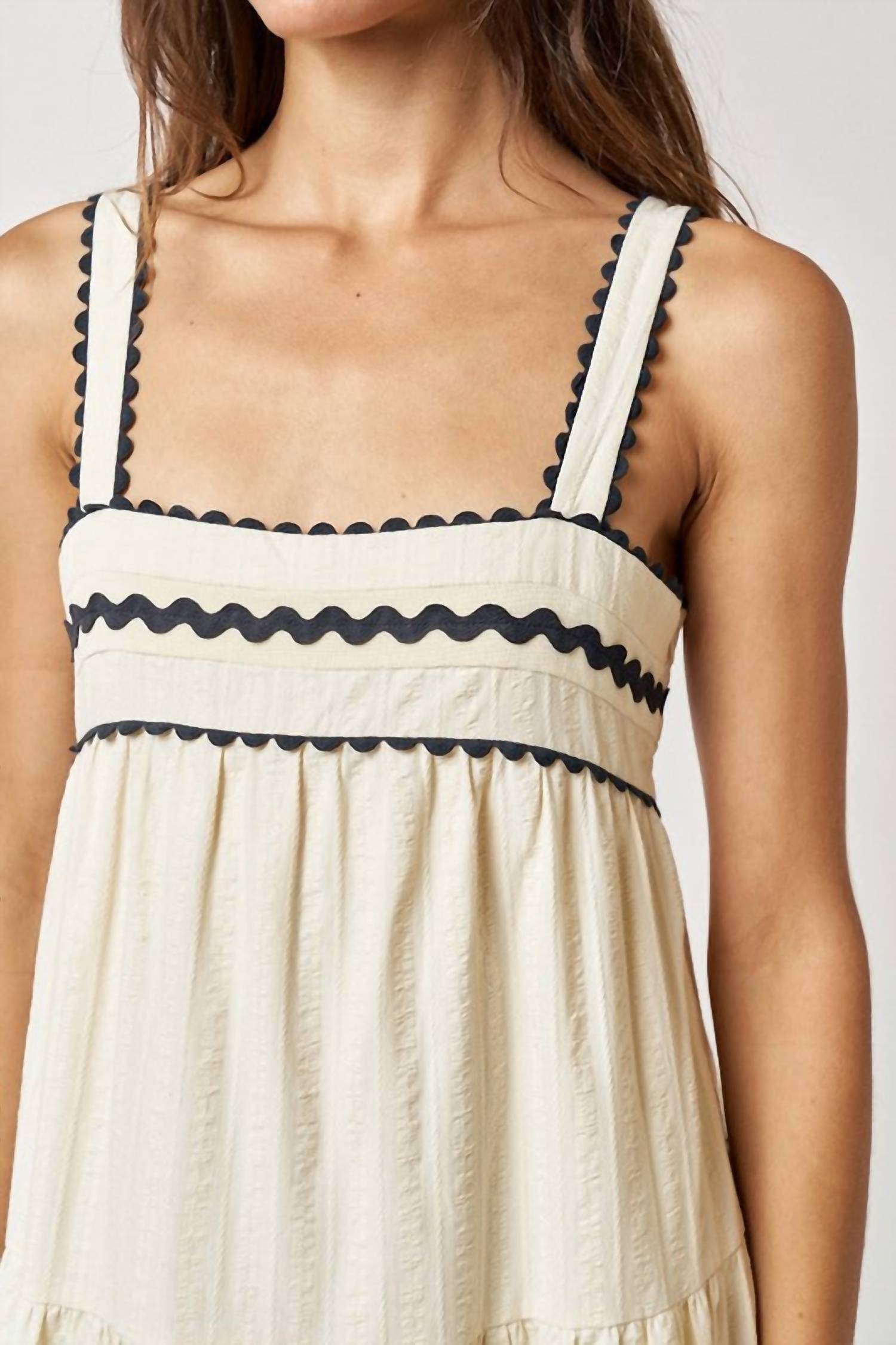 Who doesn't love a good maxi dress? This one you'll be reaching for season after season. Introducing the Isla Breeze Wavy Trim Maxi Dress by Lalavon, a sleeveless masterpiece designed to add coastal elegance to your wardrobe. This tiered maxi dress in cream with back contrast features a unique wavy trim and intricate stitch detailing. Made with 100% cotton, the dress also includes a polyester-cotton blend contrast and a rayon lining for comfort. Closure is secured with a side zipper and hook, and a square neckline completes this textured, A-line silhouette.