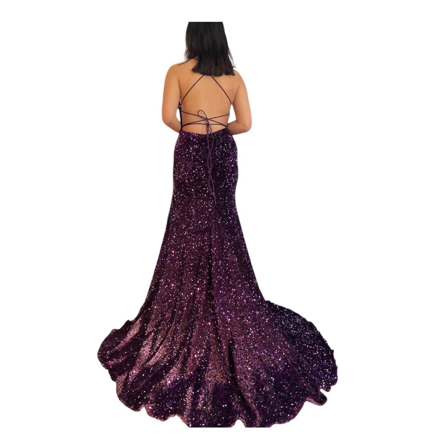 Make a statement at your next event with the Sequin Straight Neckline Prom Gown by Sherri Hill, designed for ultimate elegance. This gown features delicate spaghetti straps and a luxurious velvet composition, highlighted by a striking mermaid silhouette. The intricate lace-up back complements the zip closure for a secure fit, and the high slit adds a touch of allure. Please note that due to the nature of formal wear, all sales are final with no returns or exchanges.