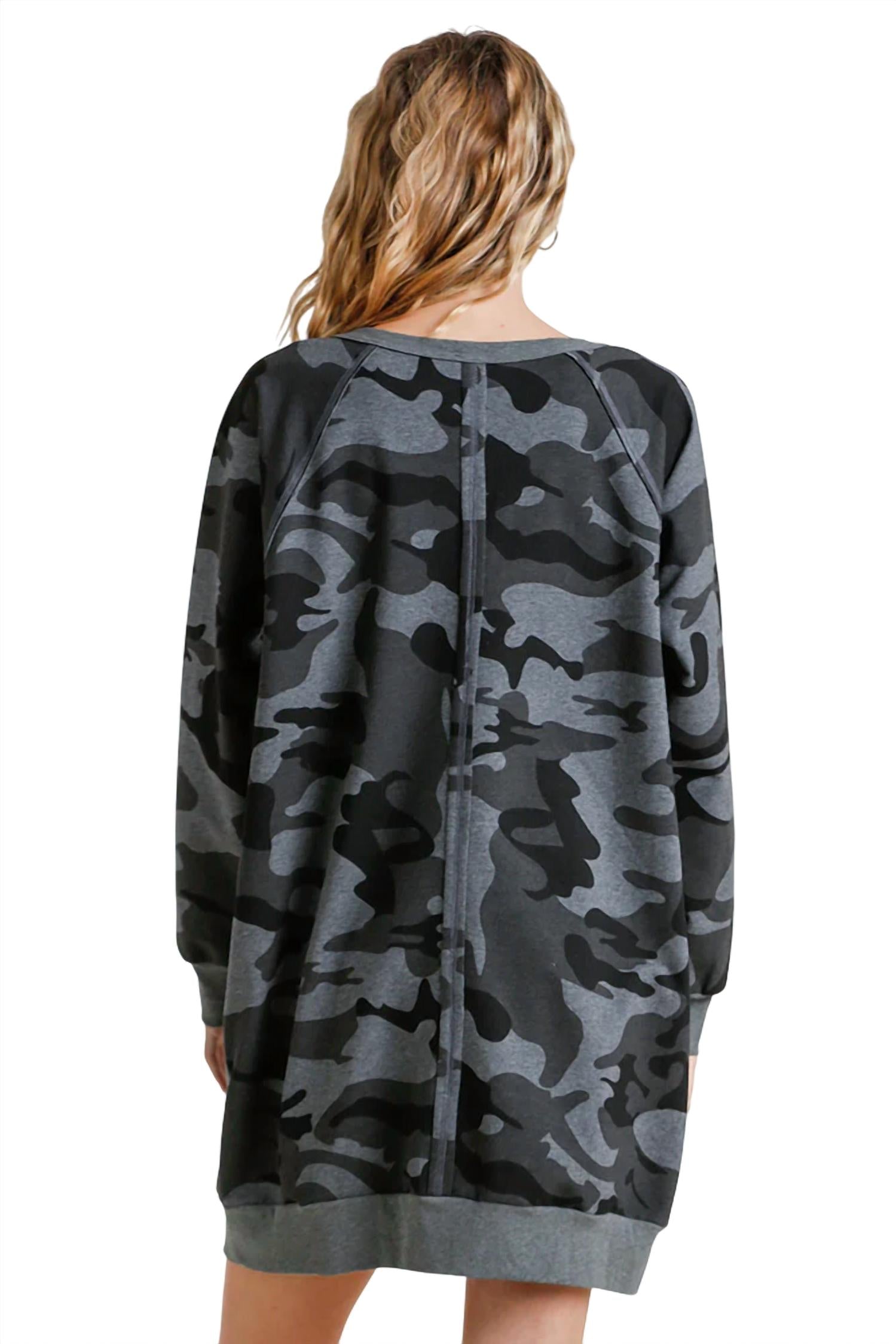 Introducing the Camo Raw Edge Dress by umgee, an adorable staple for your wardrobe. This mini silhouette dress features a stylish camouflage pattern, a crewneck, and long sleeves, all crafted from a soft cotton blend of 96% Cotton and 4% Spandex. With raw edges, a banded hem, and a comfortable pull-on closure, it's made for both style and ease. Imported and perfect for pairing with sneakers or booties, this dress can be hand washed cold.
