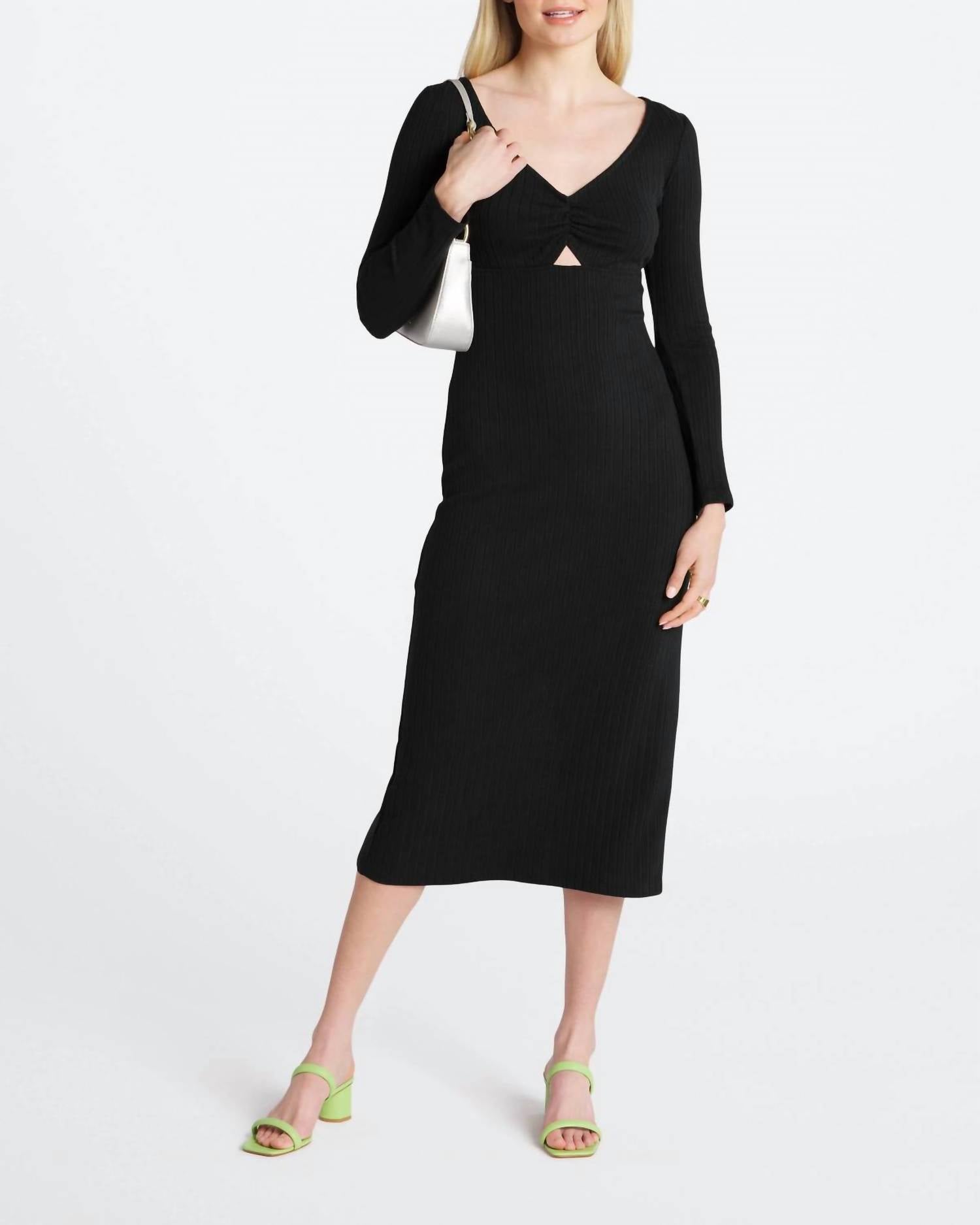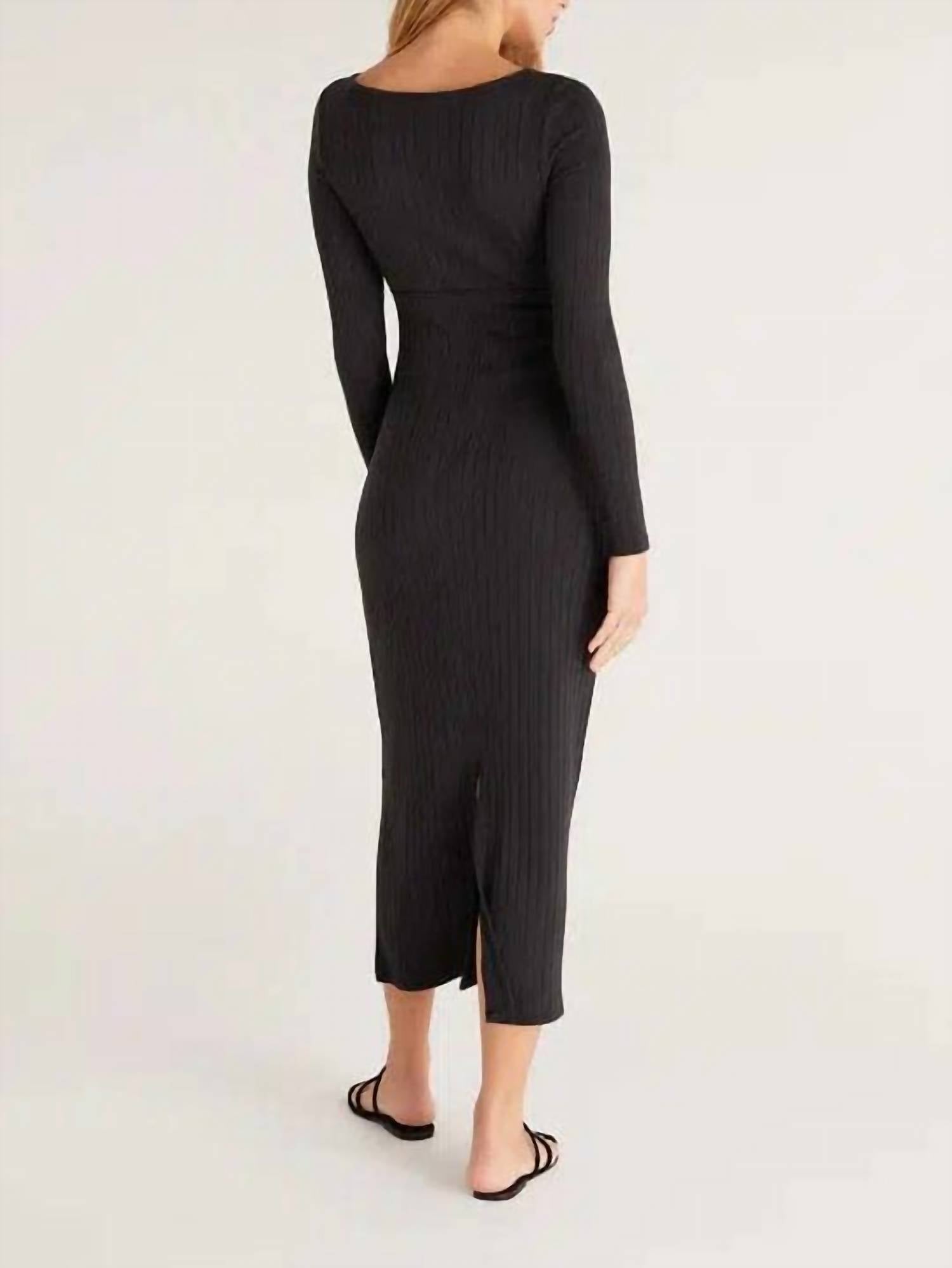 This little black dress is on another level! The Orla Rib Midi Dress is made using Z Supply's chunky Wide Rib fabric and features a flattering, body hugging fit but with some great stretch and with a flirty peekaboo detail and ruching below the v-neckline. The full midi length will accentuate your curves and have you feeling yourself all season. Fitted. Alex is wearing the small.