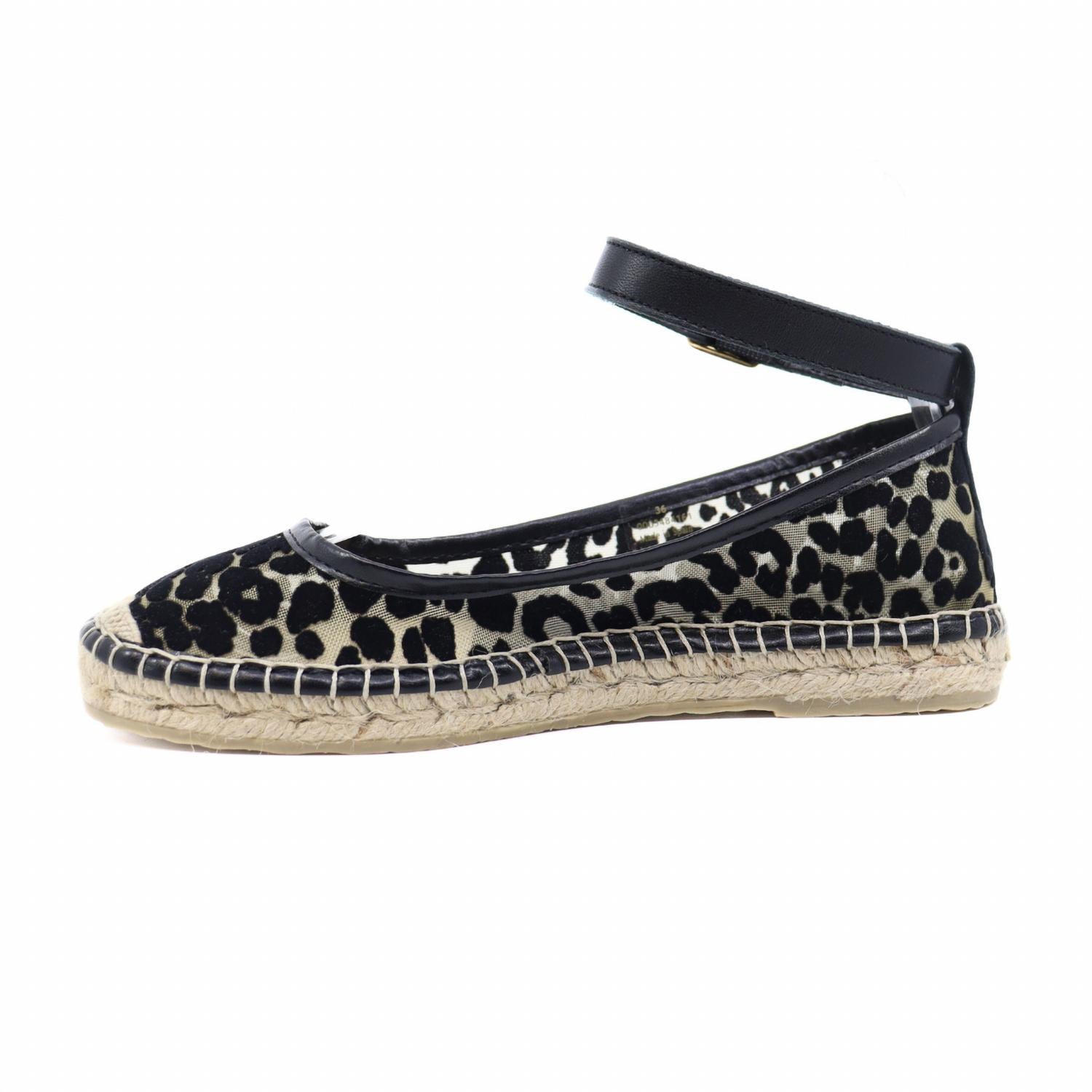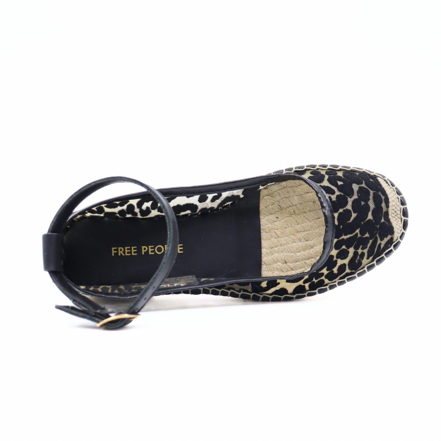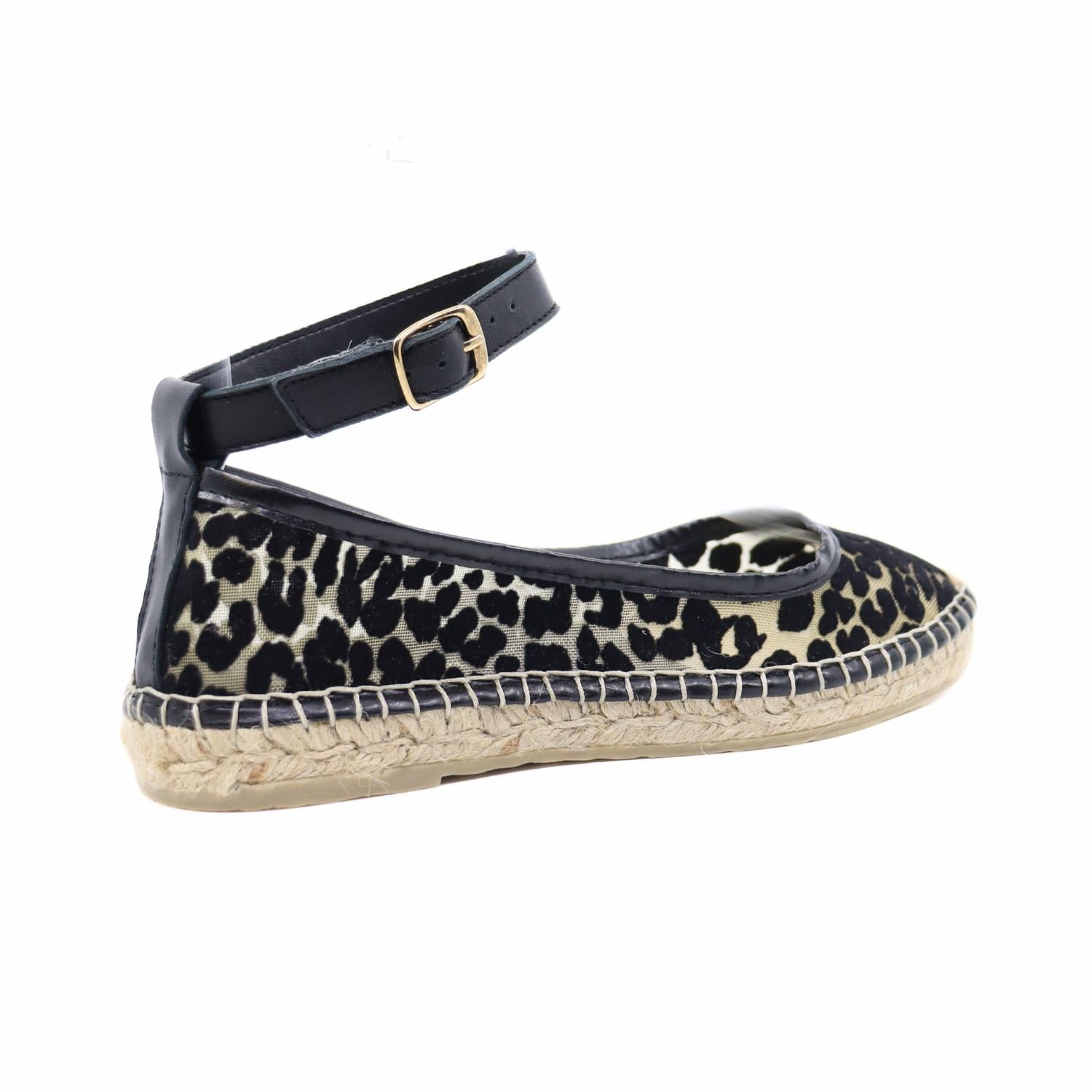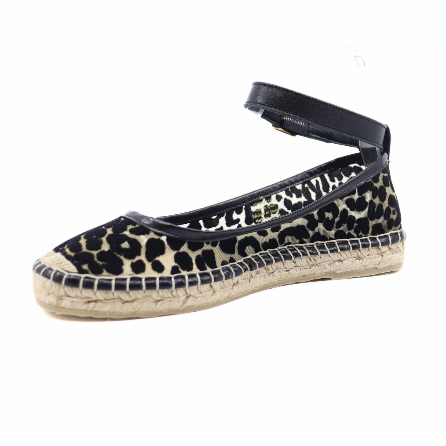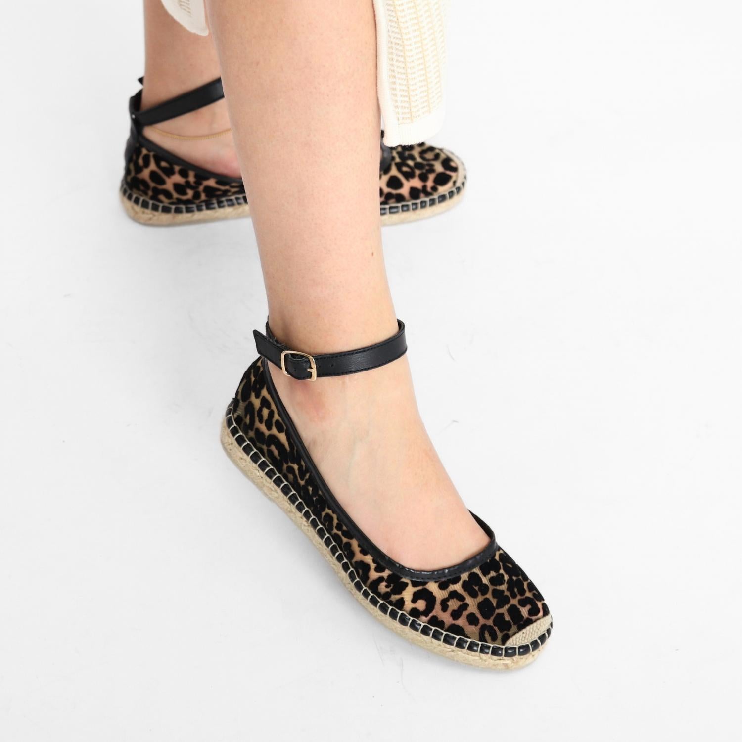 Both stylish and comfortalbe, these espadrilles have it all. Step out in style with the Mason Ballet Espadrille by Free People, featuring a fierce leopard print in black Leo. These women's flats showcase a round toe and flat heel, enhanced by a plush velvet texture and subtle mesh detailing. A sleek leather trim and slim ankle strap with a gold-tone buckle add a polished touch, while the jute-wrapped sole honors traditional espadrille design. Easy to slip on with an adjustable buckle, these shoes are perfect for elevating your spring wardrobe, whether you're attending a baby shower or enjoying a casual day out.