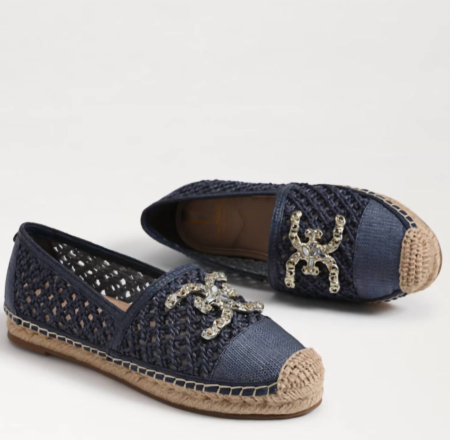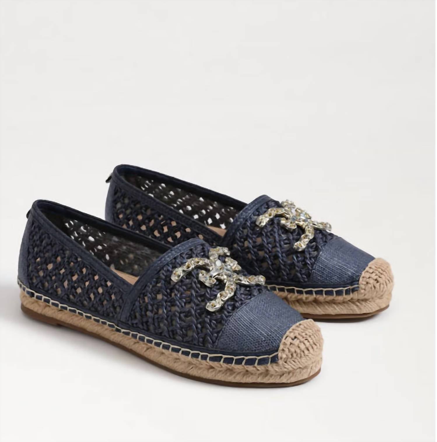 Both stylish and comfortalbe, these espadrilles have it all. Step into chic comfort with the Women's Khiara Shoes by Sam Edelman, crafted in Blue Raffia for a breezy summer vibe. These open-weave espadrilles feature a tactile cap toe and rounded shape adorned with a blingy logo detail, offering a standout boho chic look. With a 1-inch platform height and a synthetic insole, these shoes ensure both style and comfort for your vacation-ready adventures. The flat heel design is perfect for any day that demands chill-chic vibes.