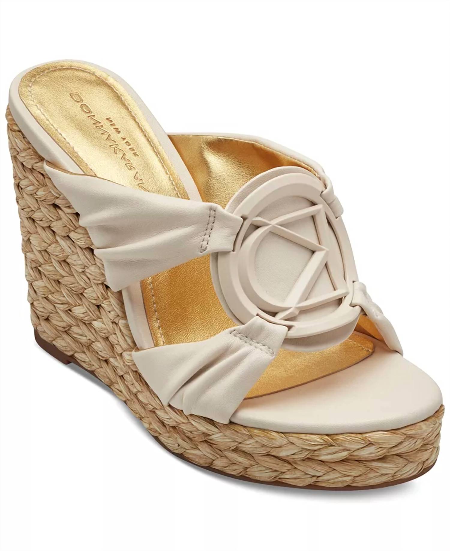 Nothing says vacation quite like a nice pair of espadrilles. Step into style with the Women's Yaneli Wedge Espadrille by DKNY, a sophisticated choice in a chic color. Crafted from durable polyester, these espadrilles feature an open toe design and a striking wedge heel that measures 4.5 inches, offering both height and comfort. Ideal for any occasion, they add a touch of elegance to your ensemble. Elevate your wardrobe with this high-heeled option designed for modern women.