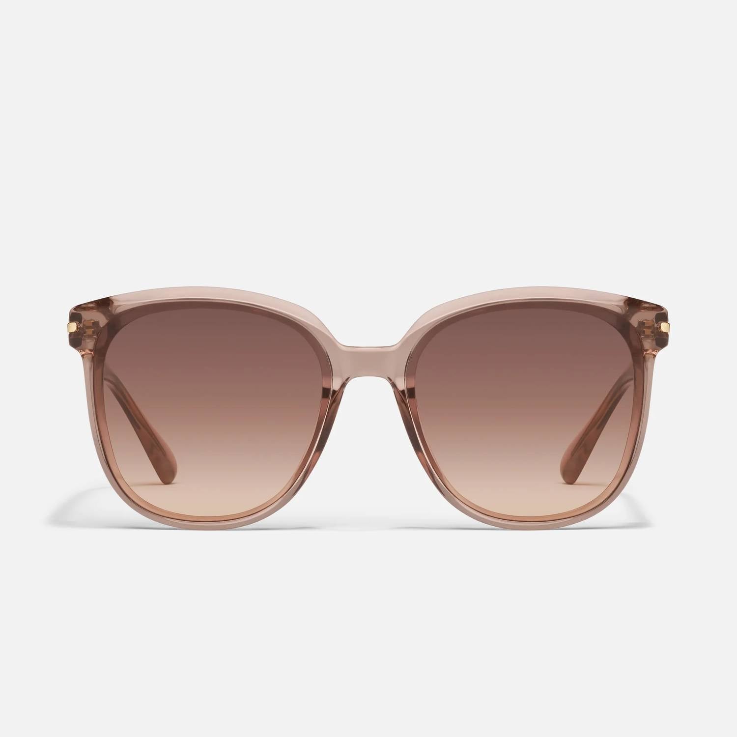 Blending fashion and practicality, these stylish shades are chic and mandatory. Stand out from the crowd and safeguard your vision with these stand-out sunglasses. Introducing the Women's Rent Free Sunglasses by QUAY, a bold and feminine accessory in Doe/Brown Fawn. Crafted with a round frame and standard arms, these sunglasses feature a thin arrowhead metal logo for a touch of elegance. Enjoy a comfortable fit with built-in universal nose pads. Dimensions include a bridge width of 17 MM, arm length of 145 MM, frame width of 147 MM, and lens height of 55 MM. Case and cloth are included for added convenience.