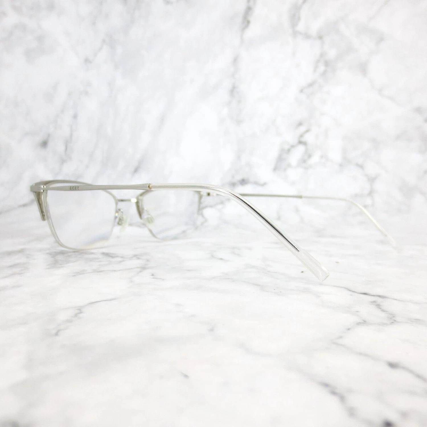 Blending fashion and practicality, these stylish shades are chic and mandatory. Stand out from the crowd and safeguard your vision with these stand-out sunglasses. Introducing the Women's DK1013 Cat Eye Eyeglasses by DKNY, a chic addition to your eyewear collection in a sophisticated blue and silver hue. Expertly crafted from metal, these cat eye glasses offer enduring style and durability. With frame dimensions offering a bridge width of 19mm, lens width of 51mm, and temple length of 135mm, they ensure a comfortable and tailored fit. Elevate your look with these stylish eyeglasses, perfect for any fashion-forward individual.