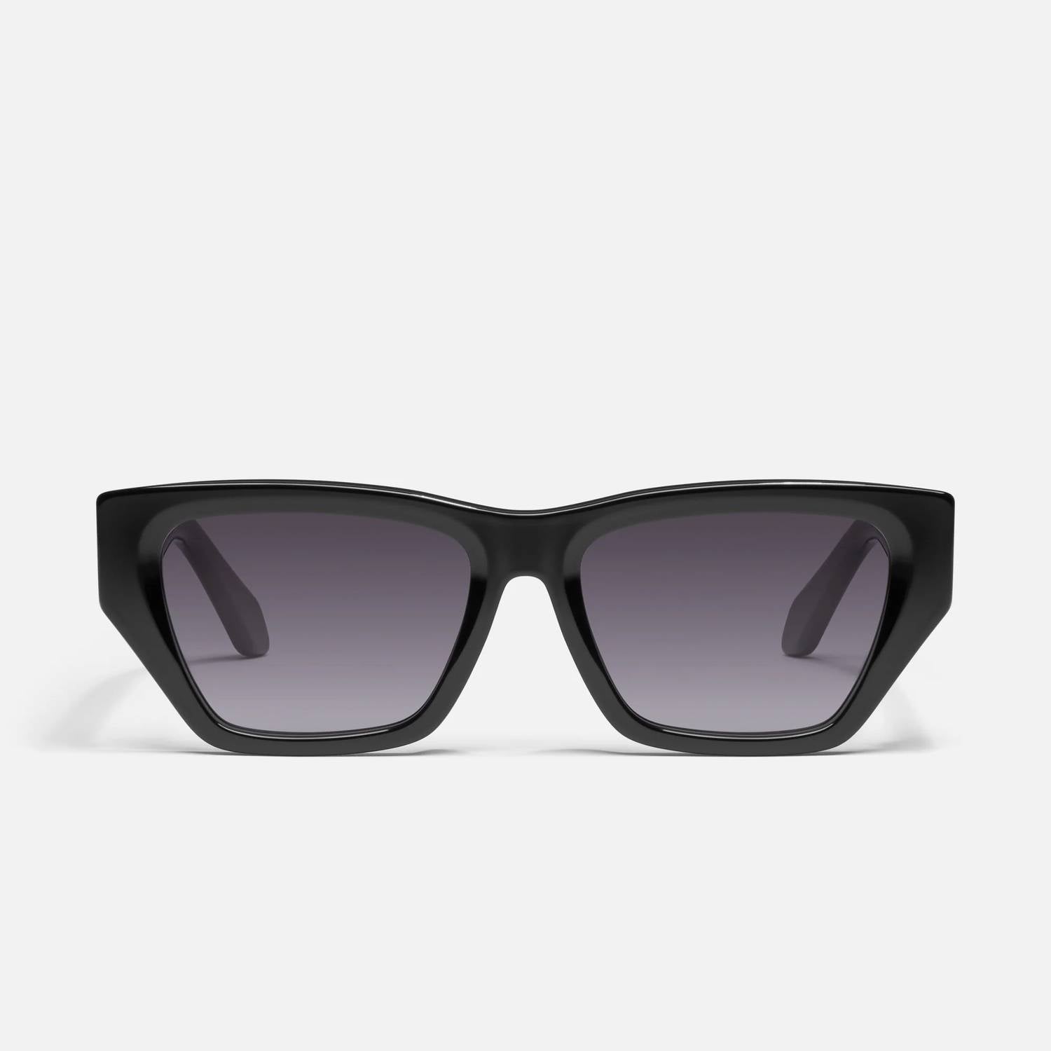 Blending fashion and practicality, these stylish shades are chic and mandatory. Stand out from the crowd and safeguard your vision with these stand-out sunglasses. Introducing the Women's No Apologies Sunglasses by QUAY, a statement piece in Black/Smoke with a bold, angled square frame. These sunglasses feature distinct metal grommet detailing for an edgy look. The design includes tall arms, a bridge width of 17 MM, and a frame width of 145 MM, with a lens height of 40 MM for a perfect fit. Built-in universal nose pads ensure comfort, and they come with a protective case and cloth.