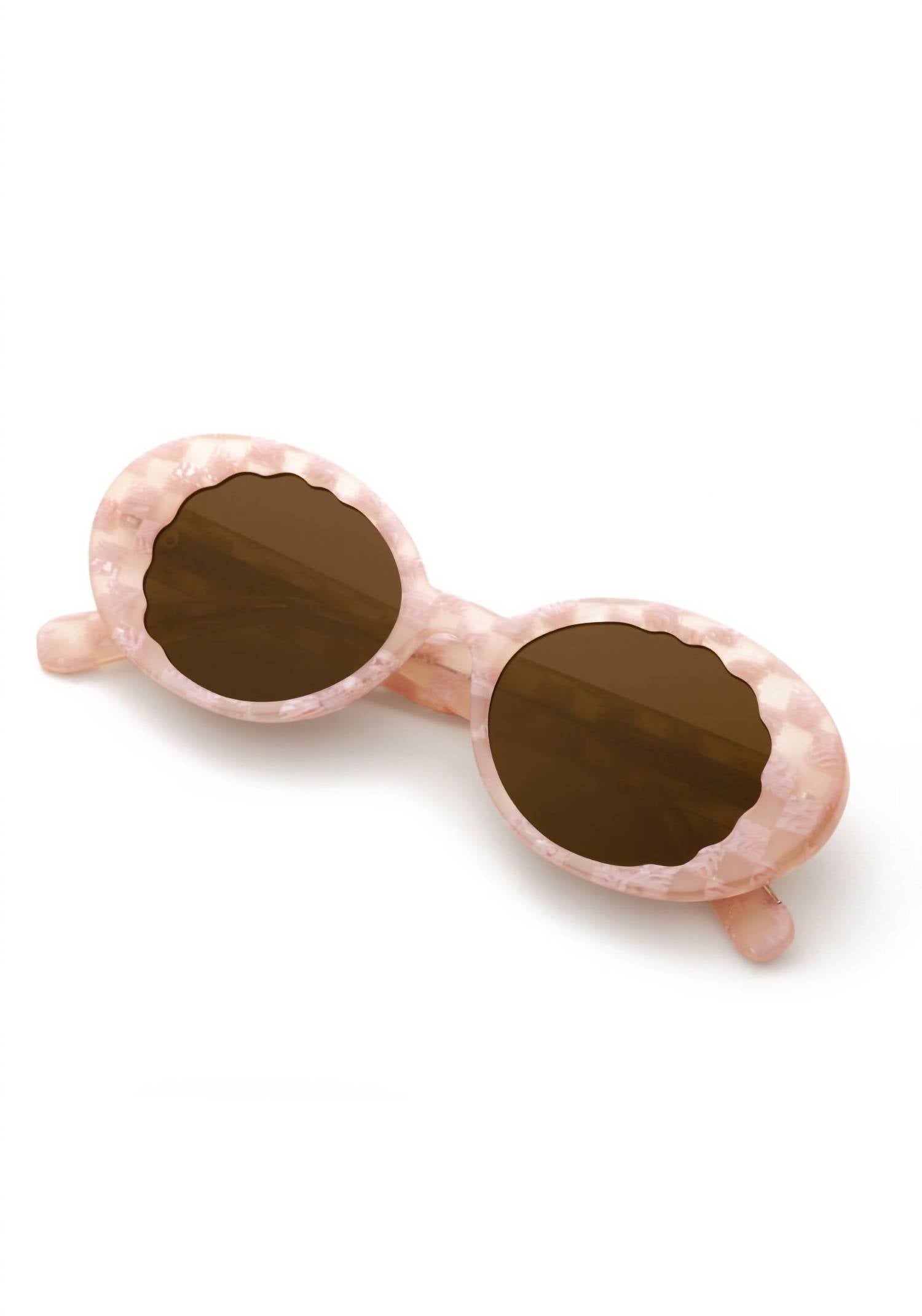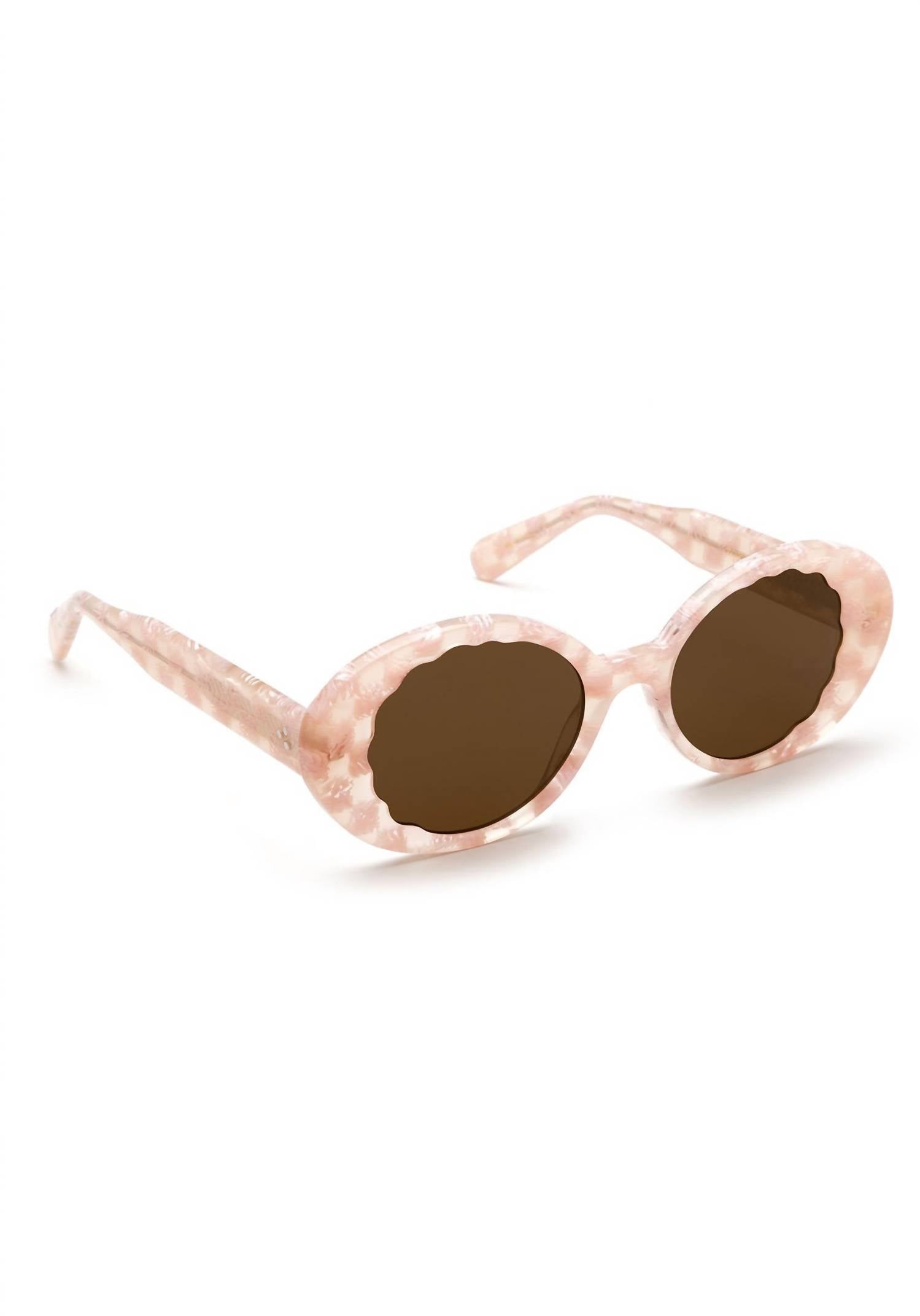 Upgrade your eyewear collection with these stunning sunglasses, meticulously designed to offer a perfect balance of style and functionality. Protect your eyes in style! Elevate your eyewear collection with the Women's Alixe Sunglasses by KREWE in a standout Pink Plaid design. Handcrafted with a glossy acetate frame, these sunglasses feature custom amber gradient lenses that offer 100% UVA and UVB protection. Enhanced by anti-reflective and scratch-resistant coatings, they promise both style and durability with riveted 5 barrel hinges. Perfect for round and oval face shapes, this unique piece celebrates individual flair.