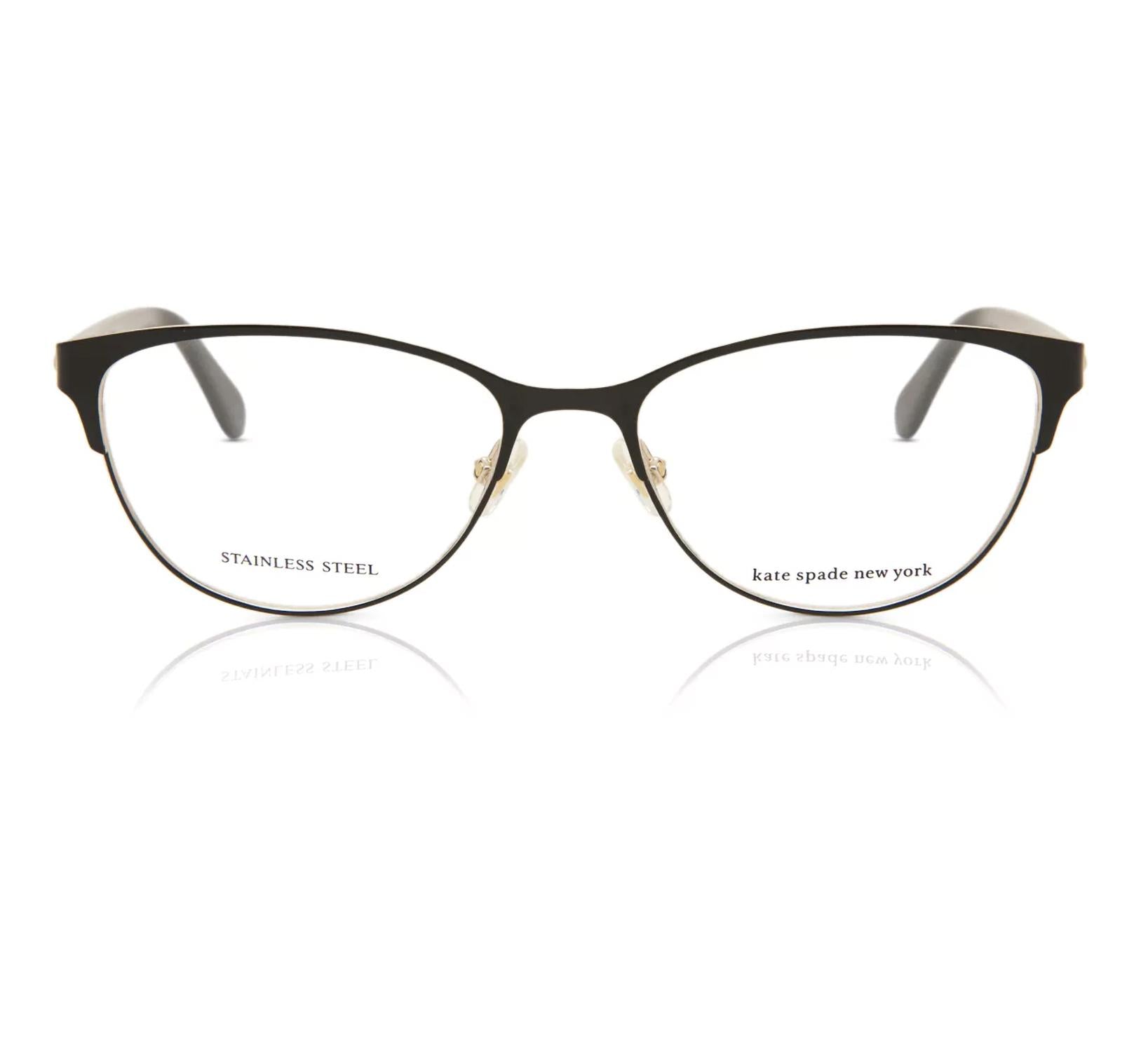 Make a statement and shield your eyes in these fashionable, yet practical sunglasses. Grab these adorable shades for your next vacation and elevate your accessory game. Discover the Women's Hadlee Eyeglasses by Kate Spade, a chic blend of sophistication and style for your eyewear collection. These full-rim cat eye frames boast a sleek black color and are crafted from durable stainless steel. Designed to complement oval and triangle face shapes, they feature a lens width of 52 mm, a bridge width of 16 mm, and arm length of 140 mm. The clear lenses are customizable to suit your vision needs.