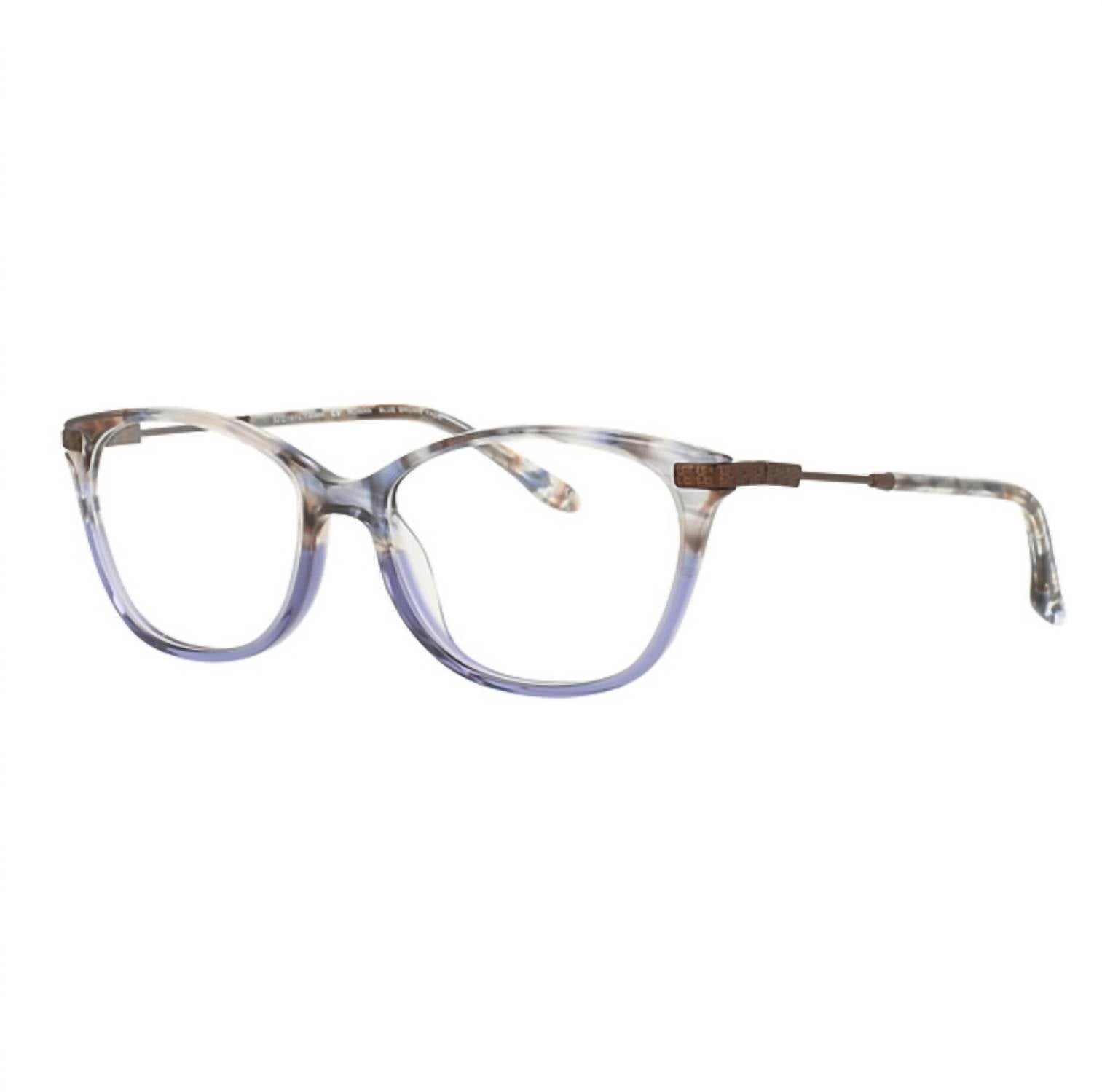 Blending fashion and practicality, these stylish shades are chic and mandatory. Stand out from the crowd and safeguard your vision with these stand-out sunglasses. Meet the Women's Rowan Eyeglasses by BCBGMAXAZRIA, a stylish oval-shaped frame in a chic Blue/Brown color combination. Crafted from durable plastic, also known as cellulose acetate or zyl, these frames provide both comfort and a perfect fit. The full frame design ensures maximum stability and durability, making them a sophisticated addition to any look. With a lens width of 54, bridge size of 16, and temple length of 135, they are perfect for balancing rectangular face features.