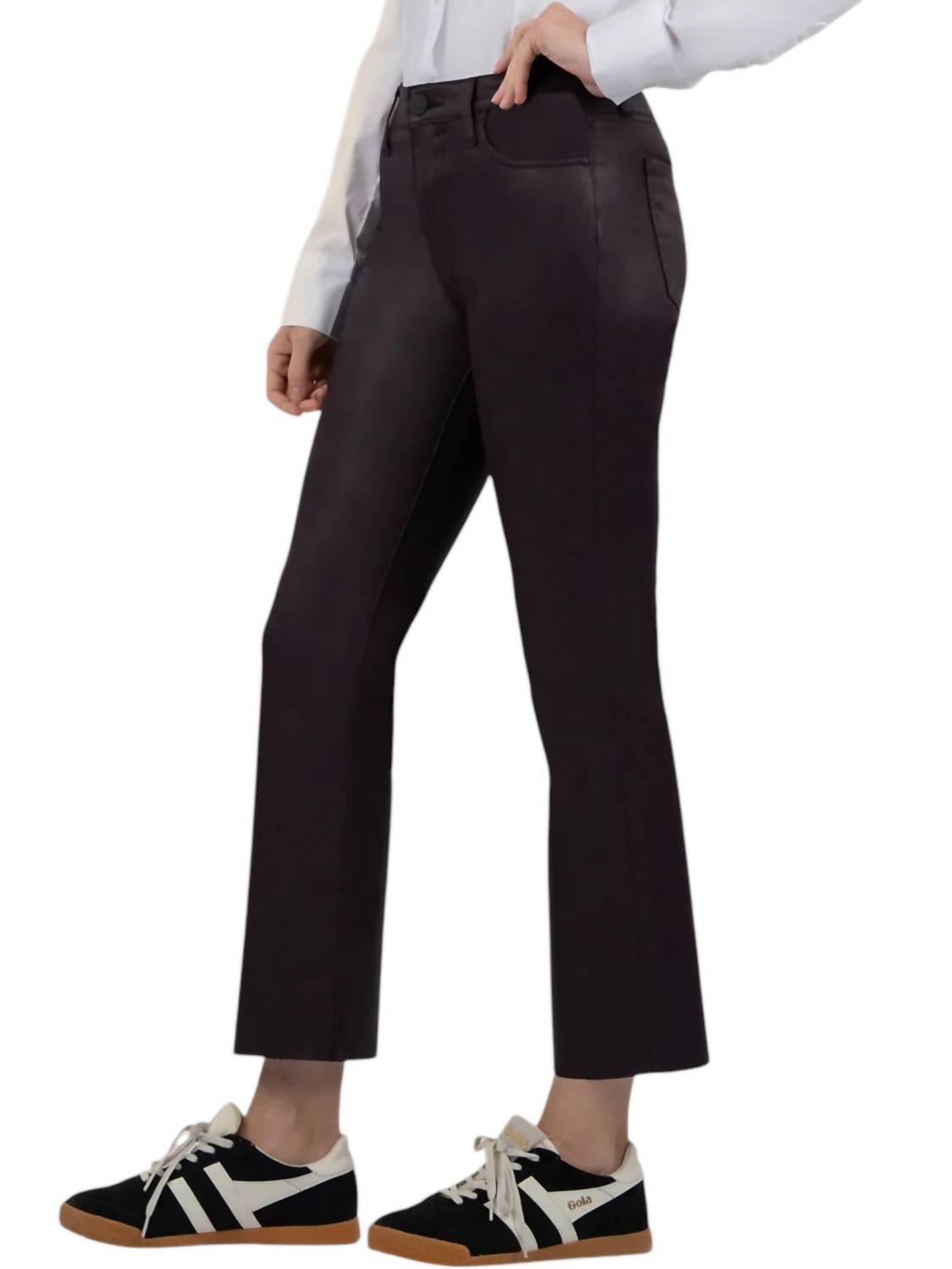 Unveil a blend of sophistication and trend in a striking Sangria hue. Embrace the faux leather allure. Crafted from 59% Modal, 40% Polyester, and 1% Spandex. Ensuring ultimate comfort and style. Designed with a 27" inseam, 17 3/4" leg opening, and a rise of 10 1/4".