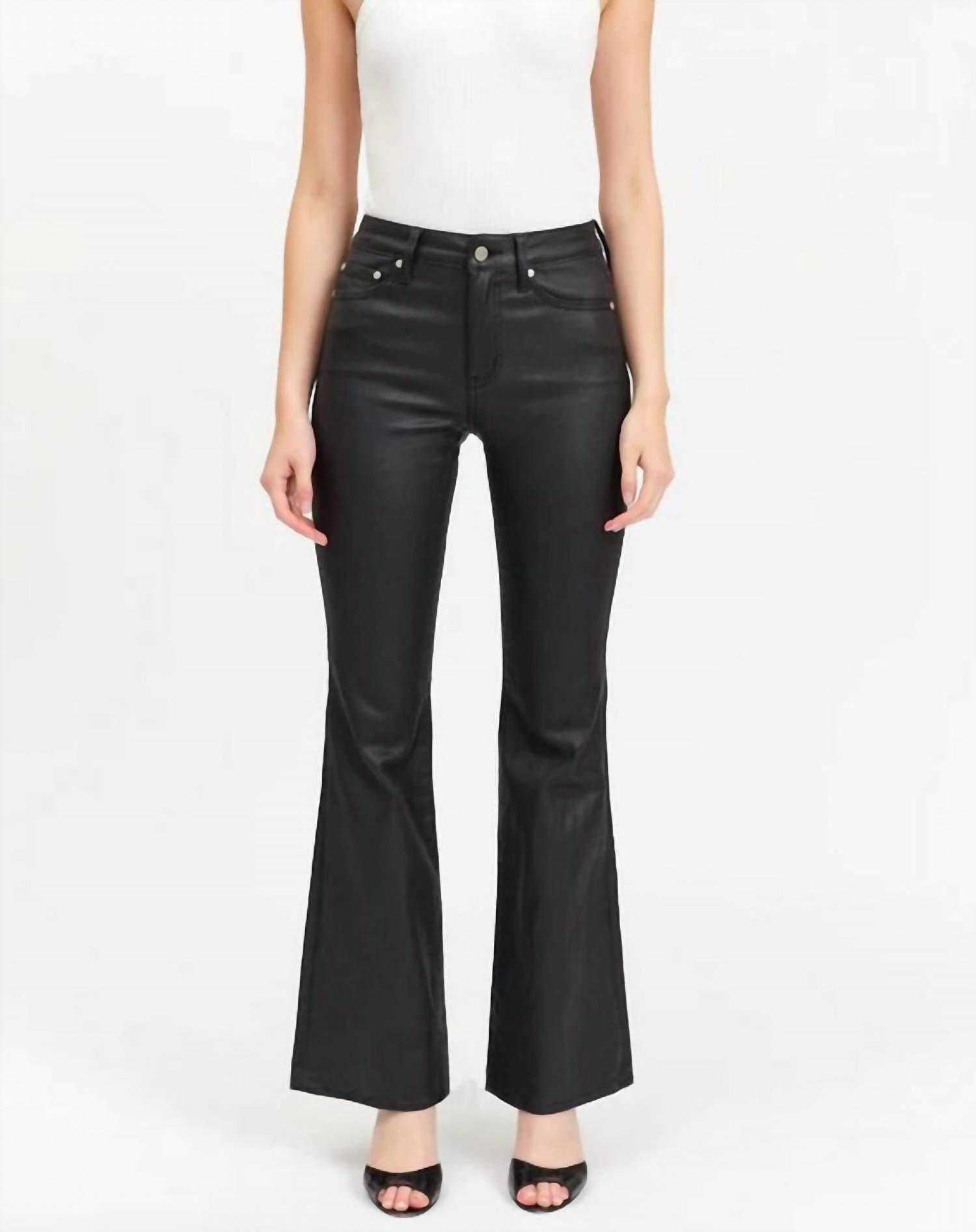 The trend report says boot-cut is in and that's exactly why we love this style. They are fit to perfection, flattering on any body type, and comfortable. They will be your go-to all season long. Meet the Heartbreaker Flare Coated Denim by DAZE, a stunning pair of mid-rise jeans in coated asphalt. These jeans feature a flared leg and a 32-inch inseam, offering a chic yet comfortable silhouette. Crafted from a blend of 67% cotton, 9% rayon, 22% recycled polyester, and 2% elastane, they ensure both adaptability and comfort. Closure is secured with a zip, and care is simple with machine washing cold and tumble drying.