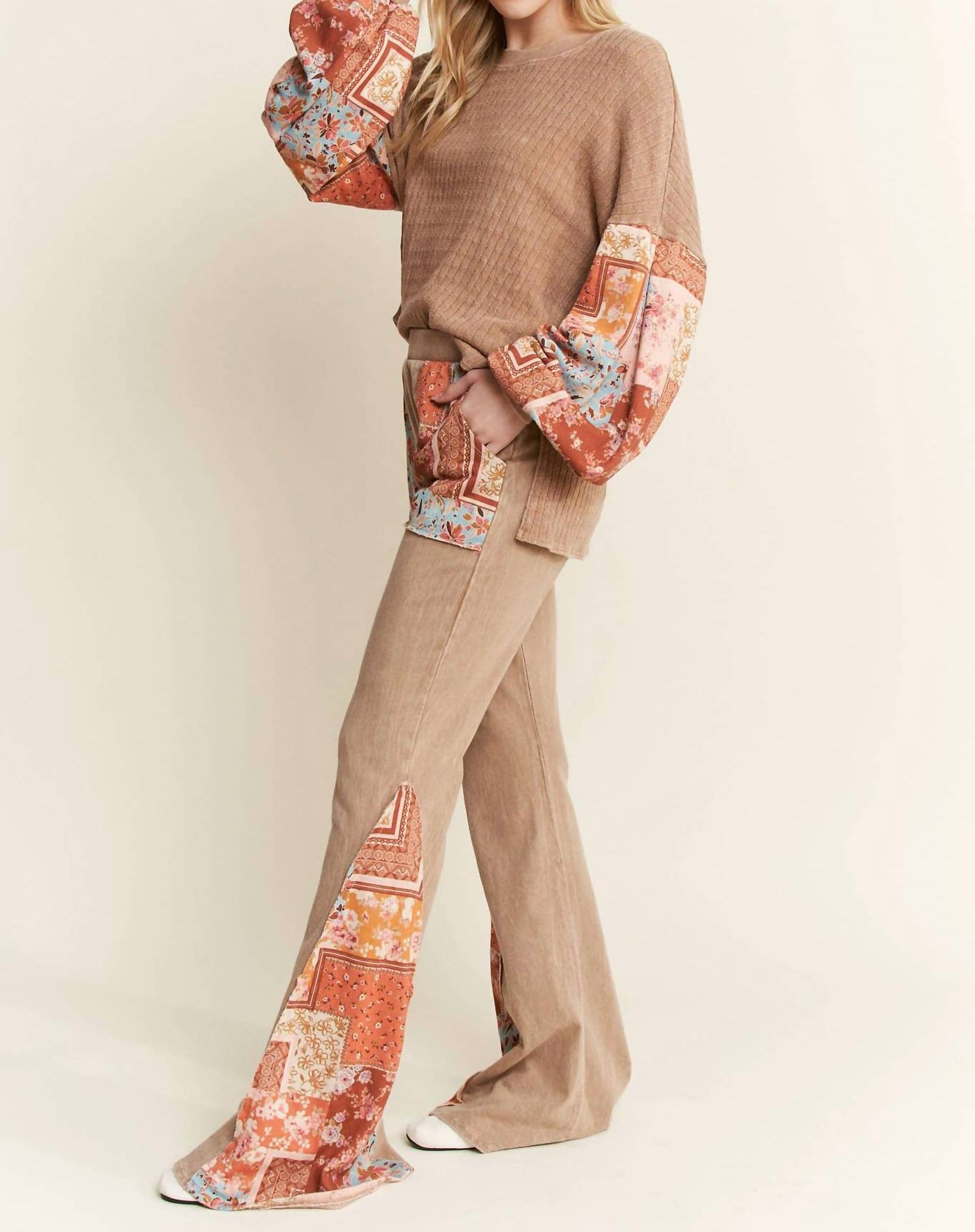 Slightly flared pants are all the rage right now and these are no exception. Pair these with your favorite tee for a more casual look, or with your favorite button-up blouse for an evening out. Discover the Boho Floral Bandana Flare Pants by J.Her, a chic addition to your fall wardrobe. These women's pants in a natural color feature a relaxed fit with a high-rise waist and a flared leg style, perfect for that boho chic vibe. Enhanced with a patterned design and convenient pockets, they offer a fashionable yet practical choice. Crafted for ease, they boast a pull-on closure, and care is simple with machine washing and laying flat to dry.