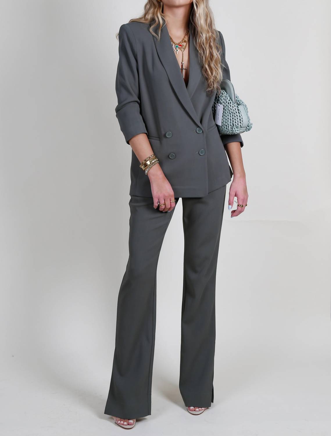 Slightly flared pants are all the rage right now and these are no exception. Pair these with your favorite tee for a more casual look, or with your favorite button-up blouse for an evening out. The Elowen Pants by Equipment are a chic addition to your wardrobe with their solid beetle color and sleek slim fit design. Crafted from a viscose blend, these pants feature a flared leg and convenient zip closure. Perfect for the workwear trend, they include pockets for added functionality. Coordinate them effortlessly for a holiday party or Thanksgiving gathering.