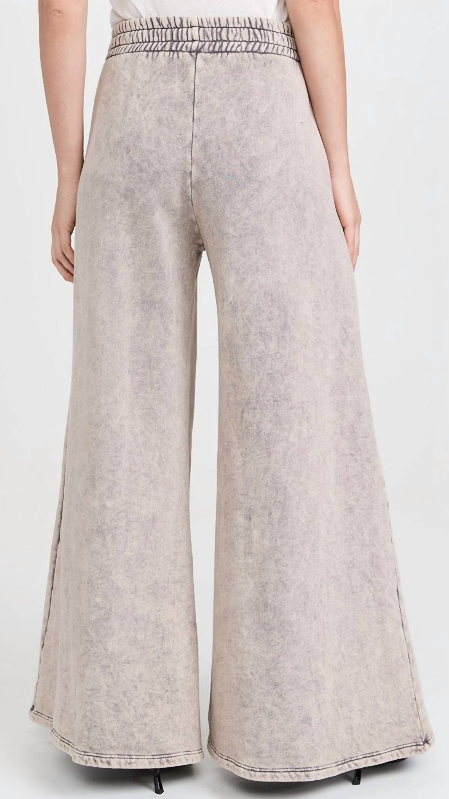 Elevate your casual collection with the Christine Flare Sweatpants by LES TIEN, perfect for making a statement in Dove Mineral. Crafted from 100% cotton, these sweatpants feature a relaxed fit with a high-rise and a flared leg, providing both style and comfort. Designed with front pockets and an elastic waistband, the gold Cobrax grommets and interlock cotton drawstrings with red stitching detail add a touch of finesse. The pants include a tie closure and are easy to care for; machine wash cold separately on delicate and tumble dry low or lay flat to dry. Model is wearing a size small, measuring 13" rise, with an inseam of 30.75", and a leg opening of 39.25".