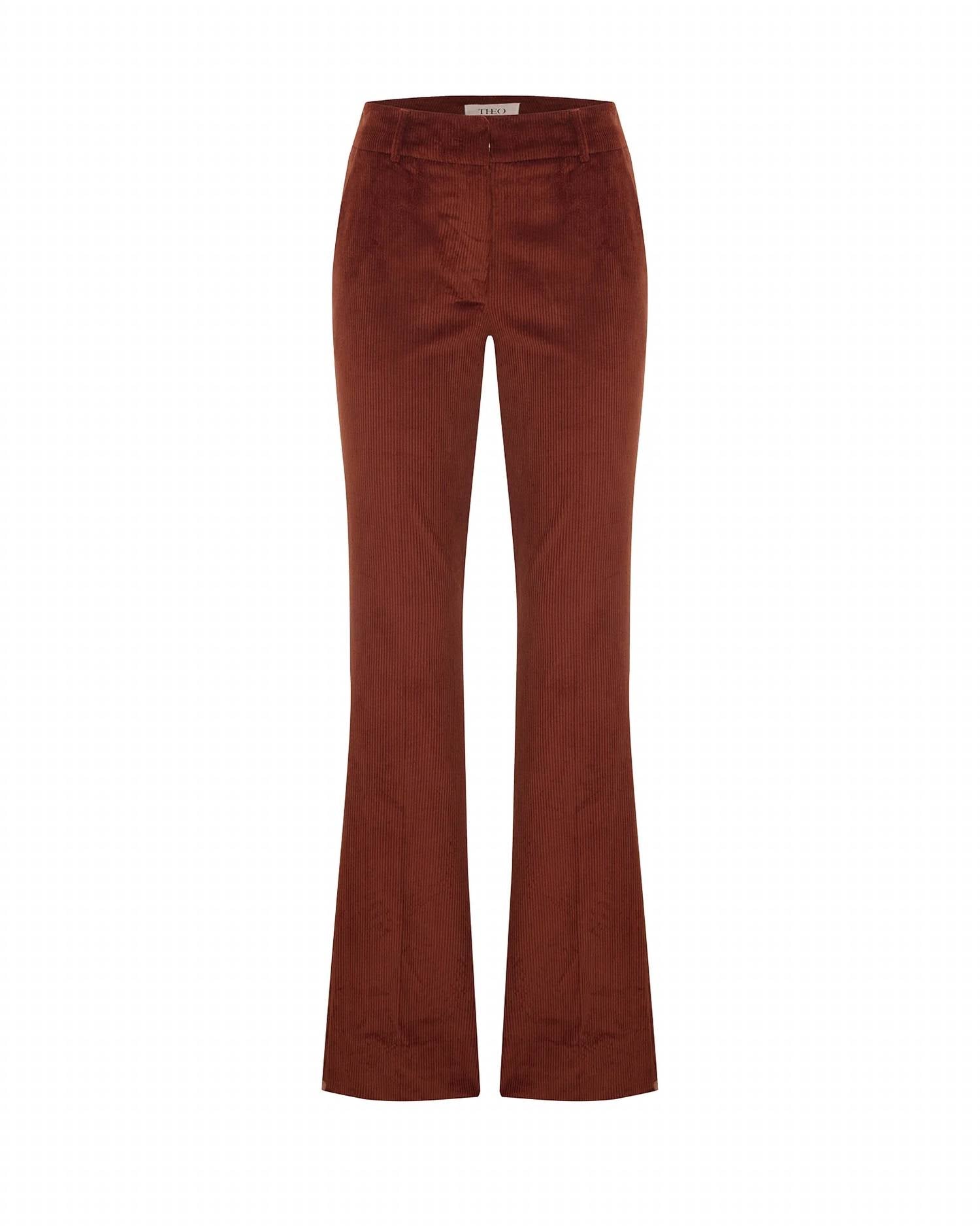 Slightly flared pants are all the rage right now and these are no exception. Pair these with your favorite tee for a more casual look, or with your favorite button-up blouse for an evening out. Introducing the Women's Clotho Corduroy Bootcut Pant by THEO the Label, a perfect fusion of comfort and style in a rich cinnamon hue. Constructed from a soft corduroy cotton blend, these pants feature a flattering bootcut leg and convenient side pockets. Composition: 98% Cotton, 2% Elastane, embodying a high-rise waist and zip closure that complements various looks, from casual to chic. Originating from Turkey, care for these pants with dry cleaning only to maintain their distinctive workwear appeal.