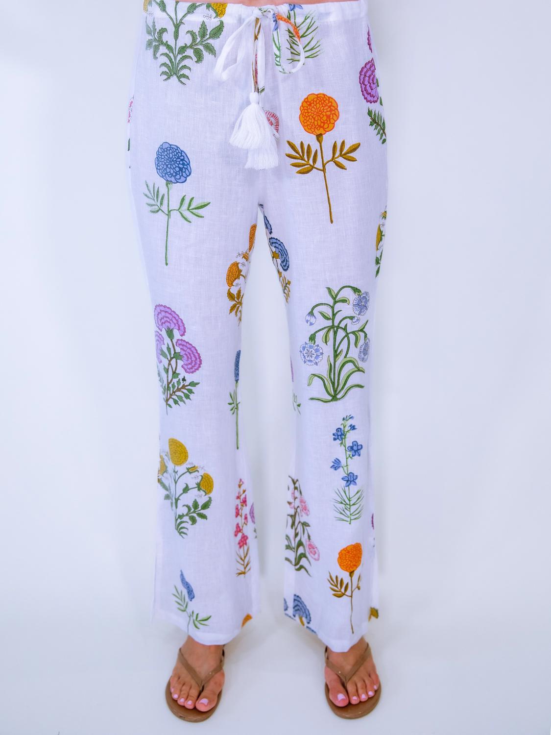 The trend report says boot-cut is in and that's exactly why we love this style. They are fit to perfection, flattering on any body type, and comfortable. They will be your go-to all season long. Designed in a Bartletts Floral Multi pattern to add a touch of Boho Chic to your spring wardrobe. Crafted from lightweight linen, featuring a relaxed fit with a mid-rise and flared leg style. With a pull-on closure. Offer effortless elegance for your holiday party outings by the seaside or in town. Care is easy with machine wash and tumble dry instructions.