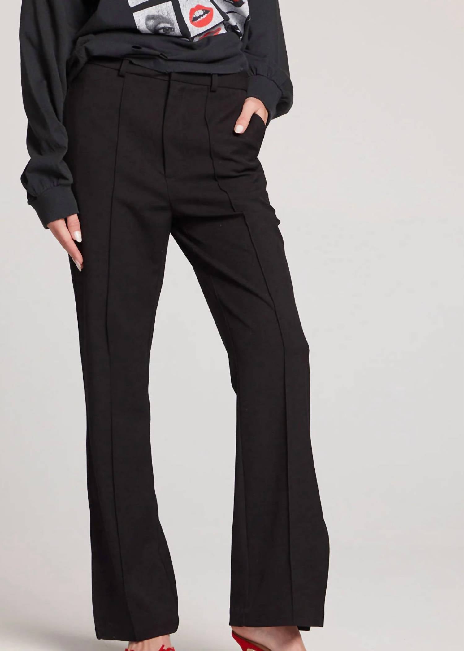 Stay on trend with these stylish boot cut pants that are fit to perfection. The perfect combination of comfort and fashion, you'll be grabbing for these all season long! Discover the Charlie Trouser by Chaser, an iconic piece in a timeless licorice shade that elevates any ensemble. With a high-rise waist and classic fit, these trousers feature a flared leg reminiscent of 70s fashion. Made from a comfortable viscose blend, it combines 66% polyester, 30% viscose, and 4% spandex. Imported and designed for effortless styling, care for this garment with machine washing and tumble drying. Model is 5'9" and wears a size small.