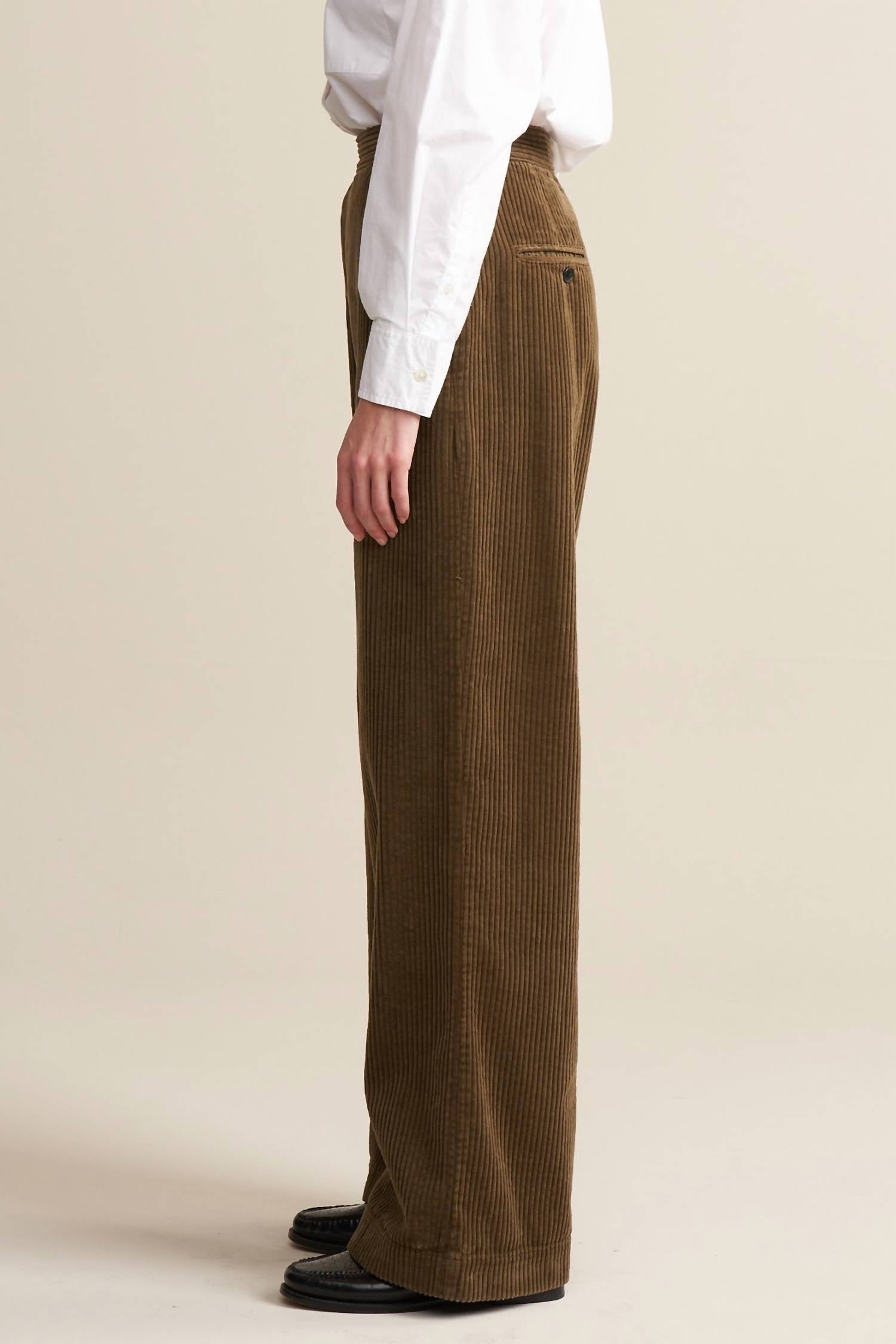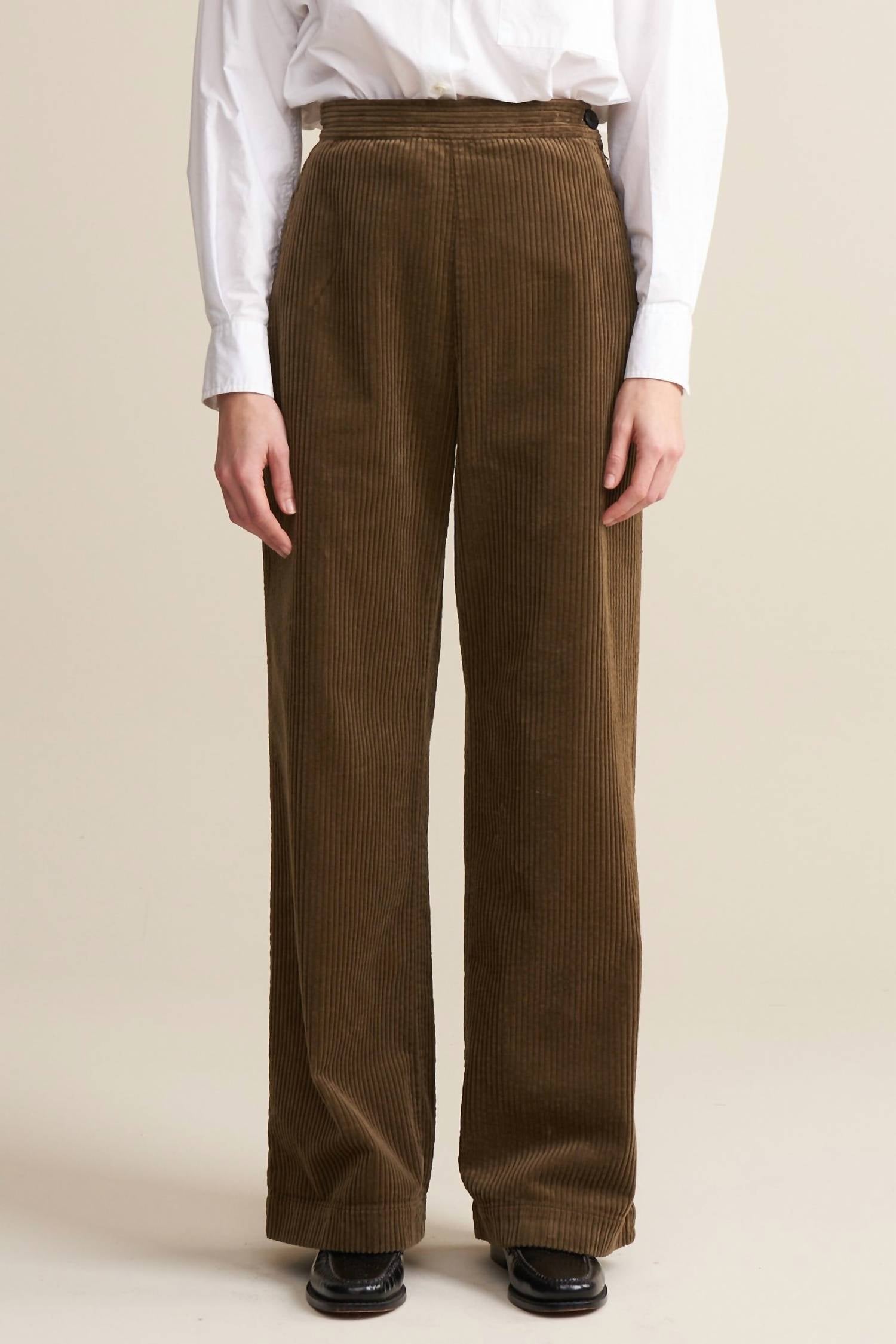 Stay on trend with these stylish boot cut pants that are fit to perfection. The perfect combination of comfort and fashion, you'll be grabbing for these all season long! The Davis Flared Pant by Bellerose offers a blend of timeless style and modern flair. Designed with a relaxed, flared leg and a high-rise waist, these textured pants in Army green bring out the best in men's fashion. Made from 100% cotton, these trousers ensure comfort and breathability. Perfect for spring engagements or Thanksgiving gatherings, and featuring hidden pockets for practicality. Care: Machine wash.