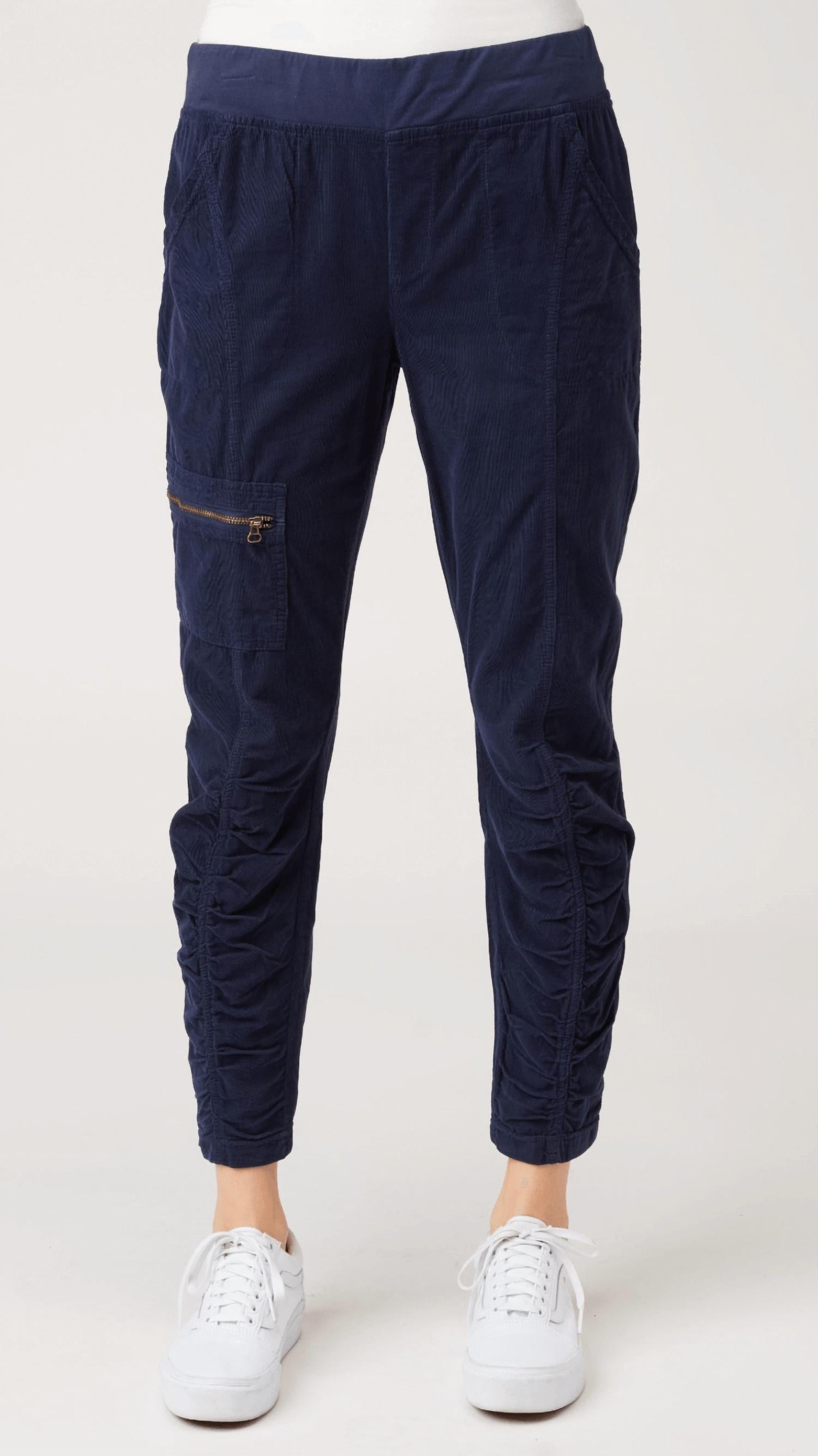 Stay on trend with these stylish boot cut pants that are fit to perfection. The perfect combination of comfort and fashion, you'll be grabbing for these all season long! Introducing the Malanda Cords Pants by XCVI, perfect for a stylish yet comfortable fit. This ankle-length design features a high-rise with a 10" front rise and a 28" inseam, offering a slim fit through the skinny leg silhouette. Crafted from 100% cotton corduroy with jersey side inserts and a soft elastic waistband, these pants promise both comfort and ease of wear. Featuring two front pockets and a side zip pocket, these pants are machine washable and imported, embodying the effortless chic of 90s fashion for your fall adventures.