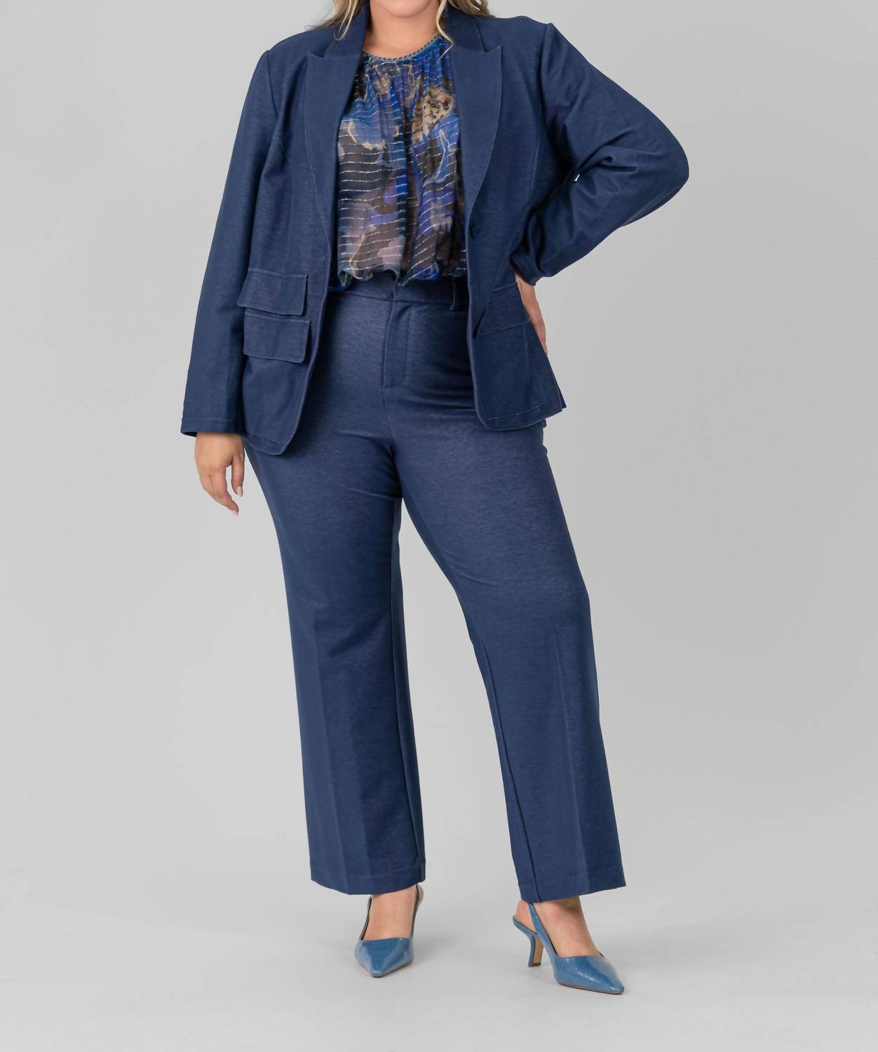 The trend report says boot-cut is in and that's exactly why we love this style. They are fit to perfection, flattering on any body type, and comfortable. They will be your go-to all season long. The Aluda Pant by Capsule 121 is a chic, mid-rise knit pant in a solid Medium Blue Wash, perfect for spring occasions like dinner parties. Crafted from a blend of 63% nylon, 34% polyester, and 3% spandex, these pants feature a stylish flared leg and a convenient zip closure. Designed with practicality in mind, they include pockets to carry your essentials. Care instructions recommend dry cleaning to maintain their impeccable look, ensuring they remain a workwear staple.
