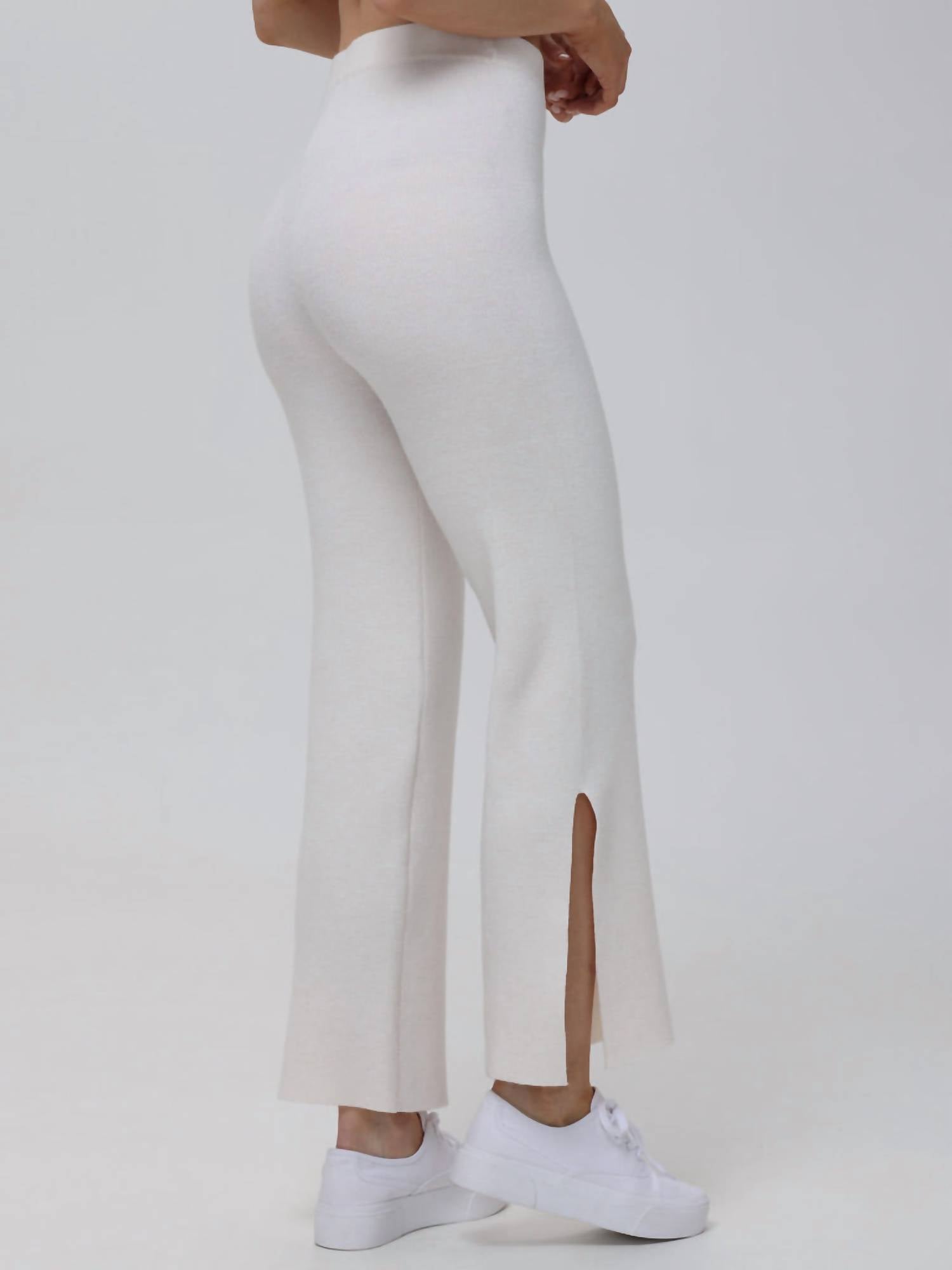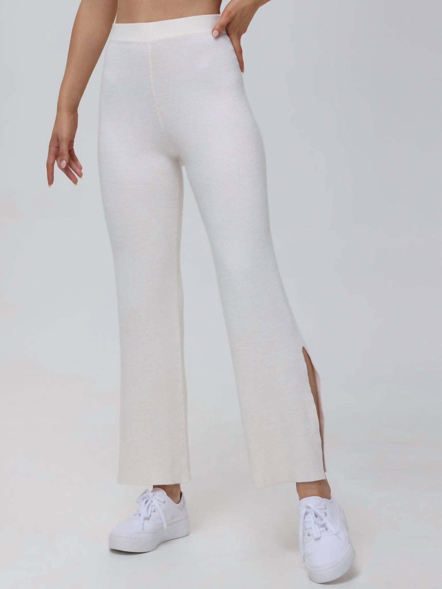 Slightly flared pants are all the rage right now and these are no exception. Pair these with your favorite tee for a more casual look, or with your favorite button-up blouse for an evening out. Introducing the Daya Luxe Sweater Pants by 525 America, a perfect blend of style and comfort in a minimalist Off White hue. These sweater pants boast a flared leg design with an inseam of 30.5 inches, a high rise of 13 inches, and a leg opening of 9 inches. Crafted from 53% Polyester, 30% Viscose, and 17% Nylon, they feature a convenient pull-on closure. Care is simple with machine wash and tumble dry low for effortless maintenance.